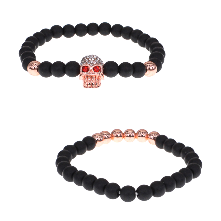 BJBS-423-02 Парные браслеты Череп, шунгит, 6мм 2 фото
