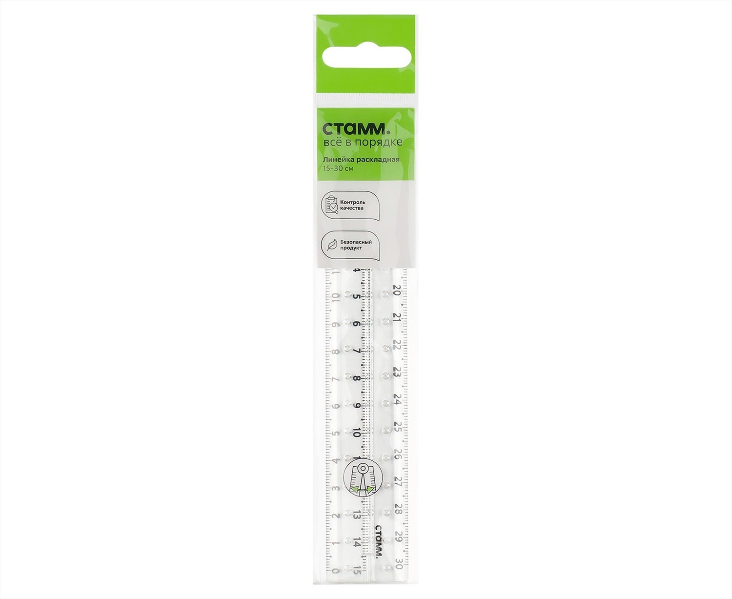 Линейка раскладная 15-30см СТАММ, пластиковая, прозрачная, европодвес 2 фото