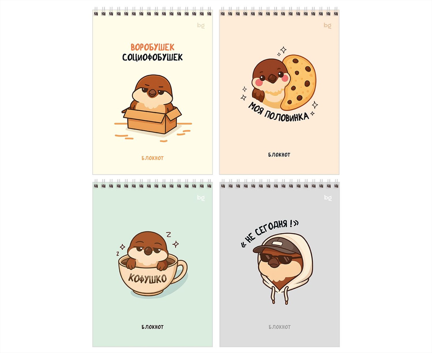 Блокнот А5 60л. на гребне BG "Воробушек", твердая подложка