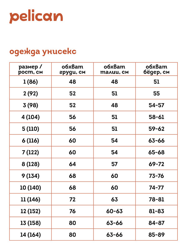 Размер : 1(86), 10(140), 2(92), 3(98), 4(104), 5(110), 6(116), 7(122), 8(128), 9(134)