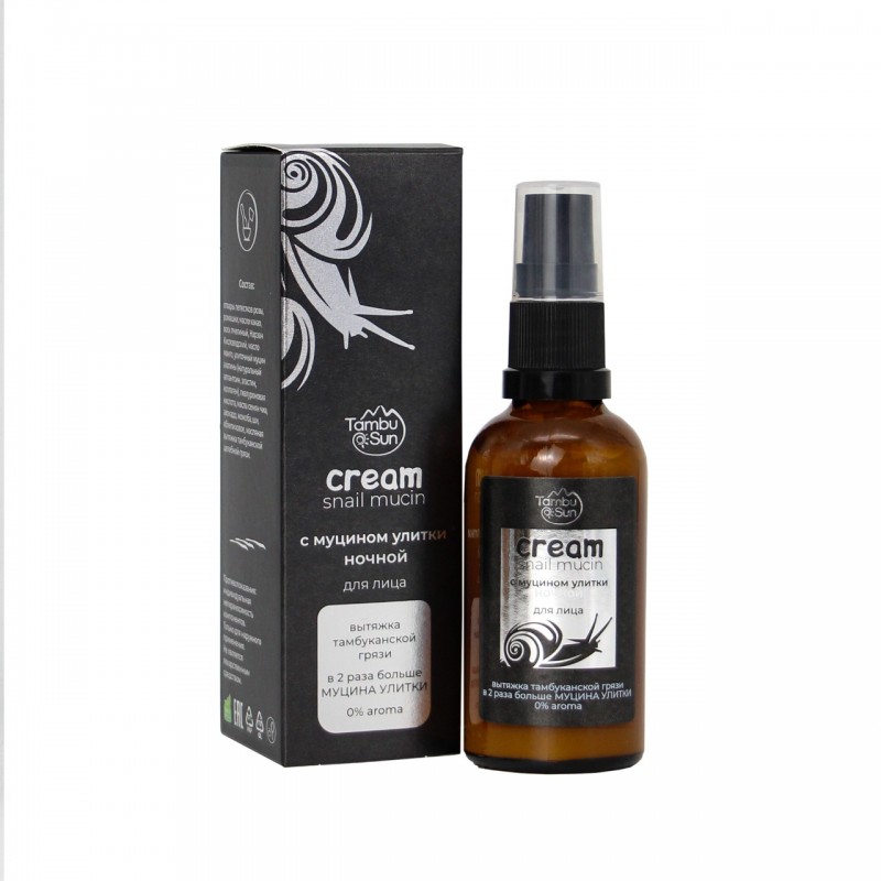 Крем с муцином улитки и вытяжкой тамбуканской грязи без запаха Ночной,стекло, 50 мл, «TambuSun» 2 фото