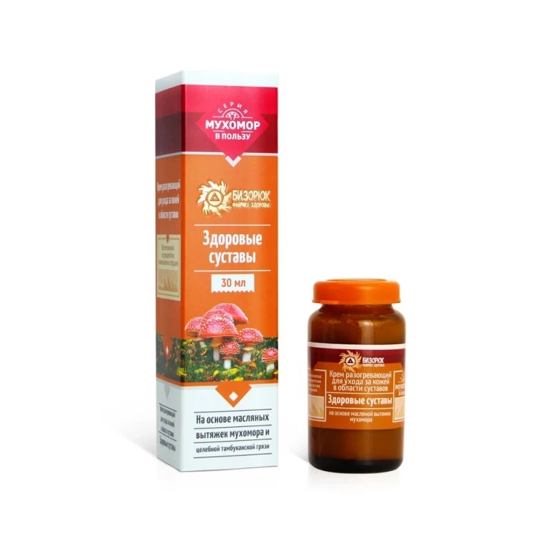 Крем оздоровительный мухомор Здоровые суставы, стекло, 30 мл, "Бизорюк" 2 фото