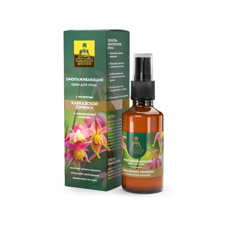 Крем для лица "Омолаживающий" с экстрактом горянки, стекло 50 мл, "Кавказский Целитель" 2 фото