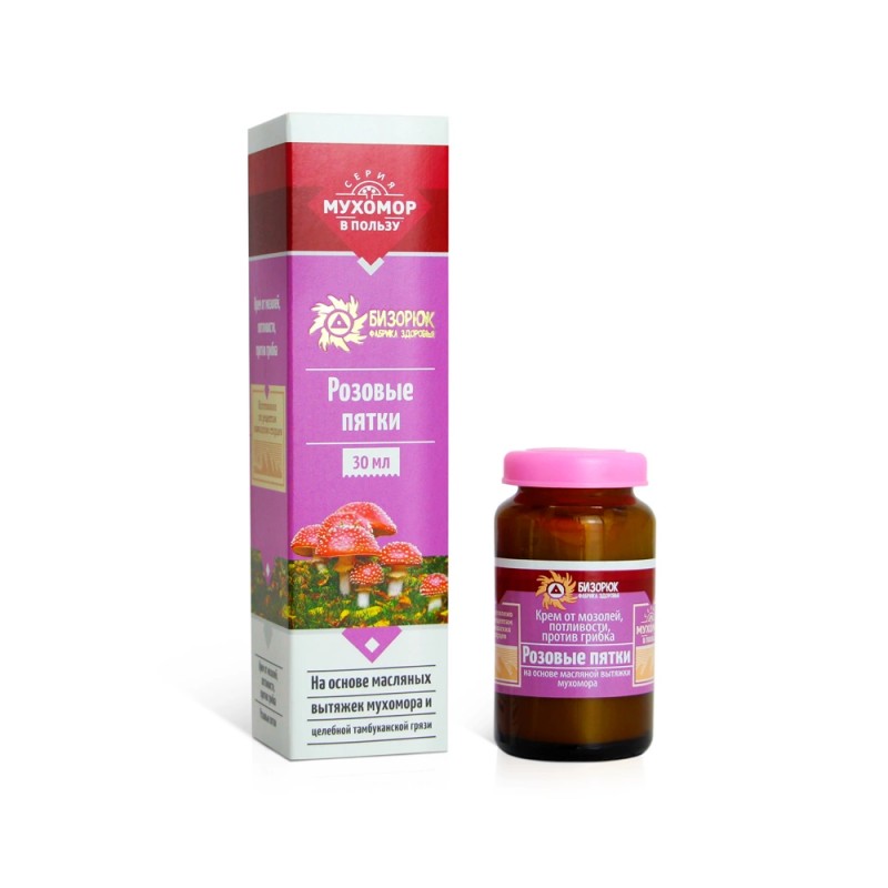 Крем оздоровительный мухомор Розовые пятки, стекло, 30 мл, "Бизорюк" 2 фото