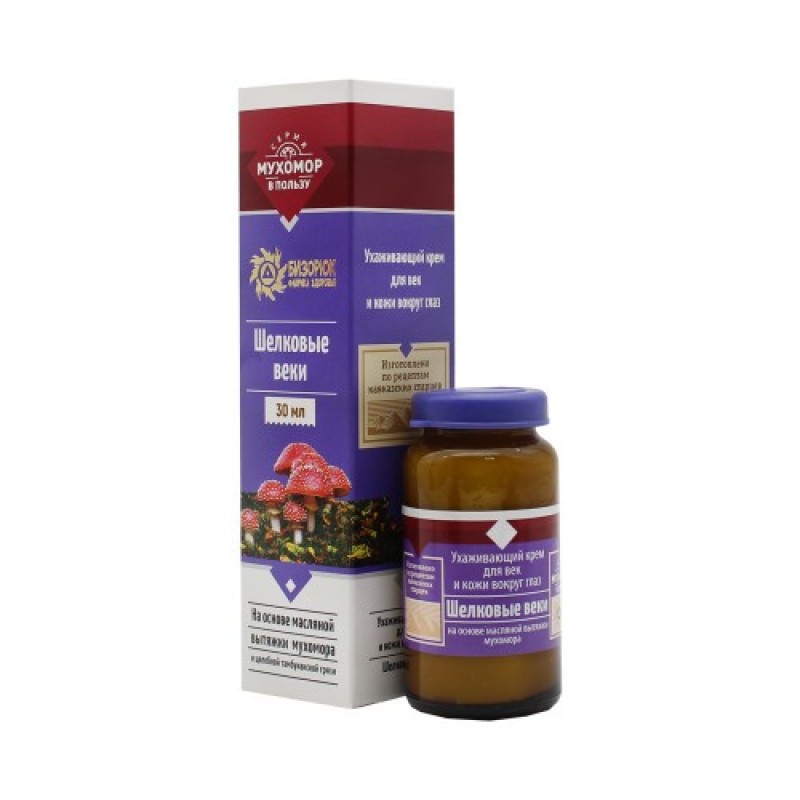 Крем оздоровительный мухомор Шелковые веки, стекло, 30 мл, "Бизорюк" 2 фото