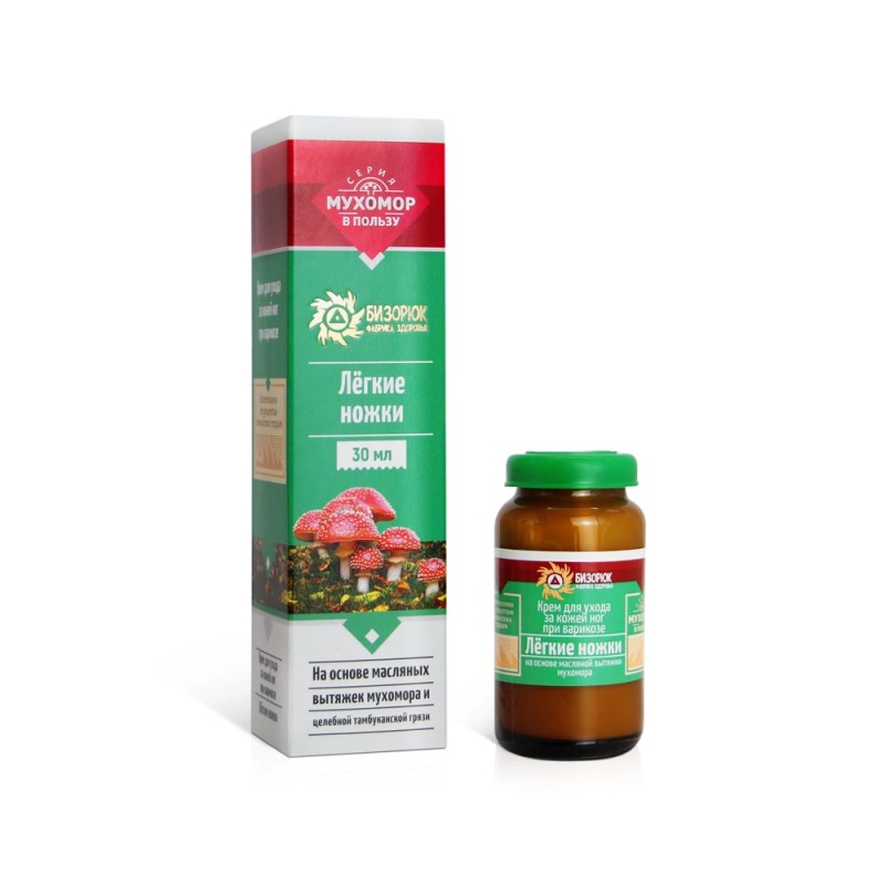 Крем оздоровительный мухомор Легкие ножки, стекло, 30 мл, "Бизорюк" 2 фото