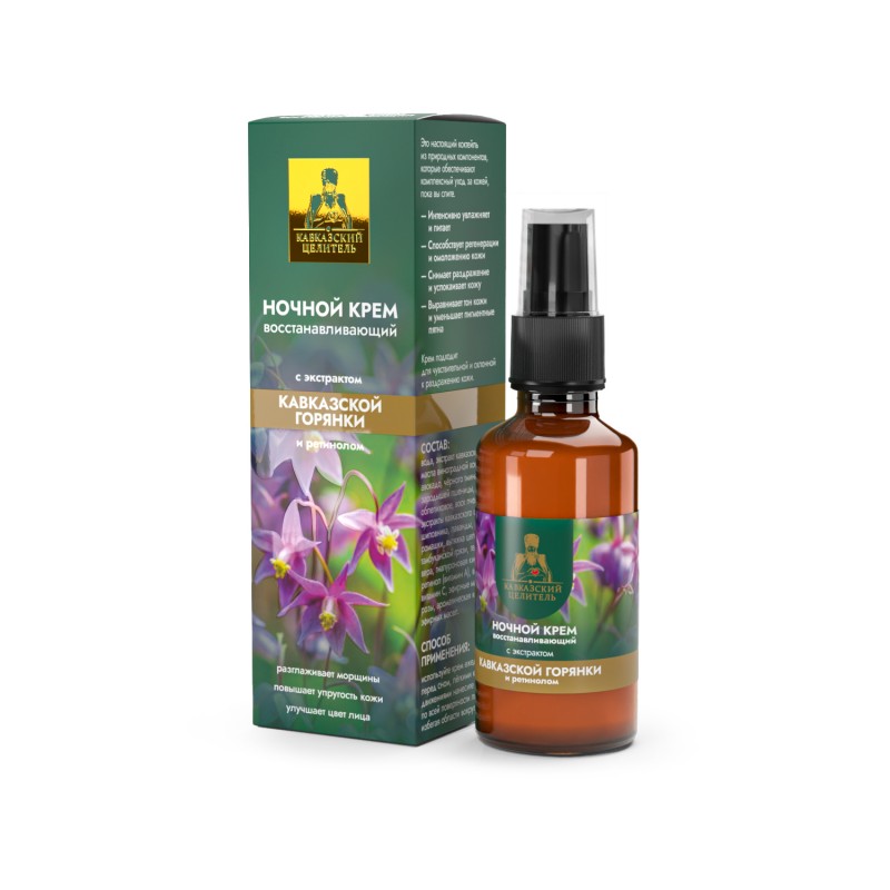 Крем ночной «Восстанавливающий» с экстрактом горянки, стекло 50 мл, "Кавказский Целитель" 2 фото