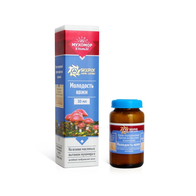 Крем оздоровительный мухомор Молодость кожи, стекло 30 мл, "Бизорюк" 2 фото