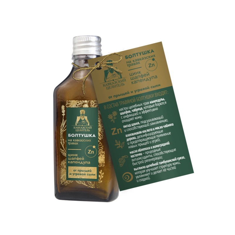 Болтушка 〈цинк, шалфей, календула〉, стекло, 50 мл, "Кавказский целитель" 2 фото