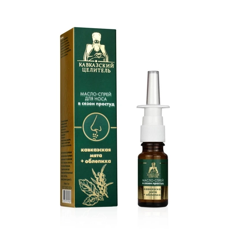 Масло-спрей для носа Кавказская мята+ облепиха, стекло, 10 мл, "Кавказский Целитель" 2 фото