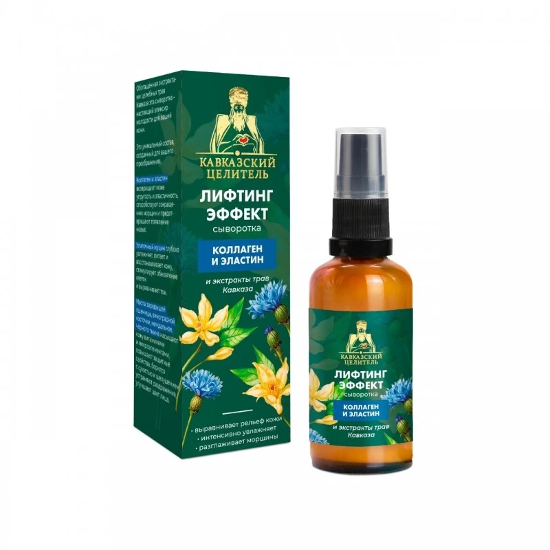 Сыворотка «Лифтинг-эффект» коллаген +эластин, стекло, 50 мл, «Кавказский Целитель»