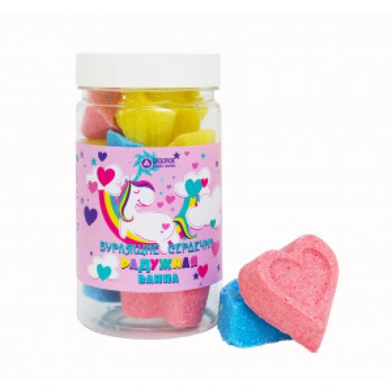 Сердечки бурлящие Радужная ванна, пластик, 165 г, "Бизорюк"