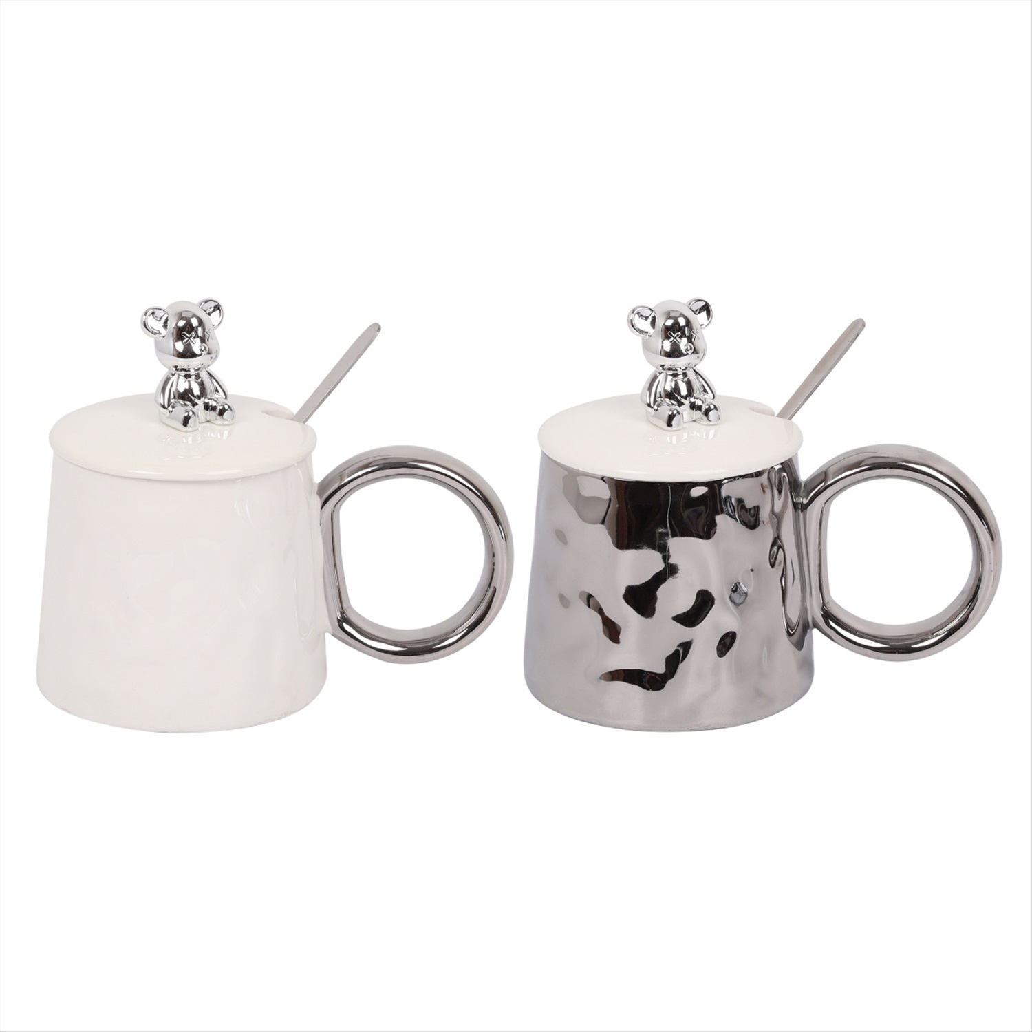 Кружка керамическая 380мл крышка, ложка Модный мишка ассорти 2 вида КОКОС 231646/Китай