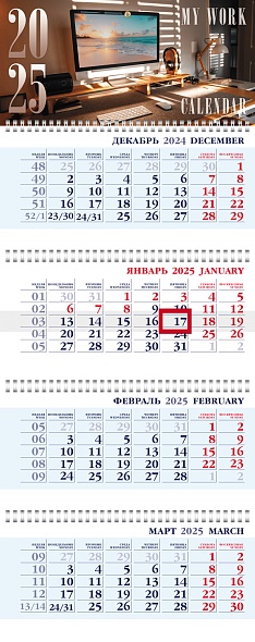 Календарь квартальный 2025 4х блочный на 4-х гребнях 297х755мм День в офисе Хатбер 4Кв4гр3_31701/20/Россия