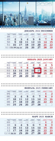 Календарь квартальный 2025 4х блочный на 4-х гребнях 297х755мм Небоскребы Хатбер 4Кв4гр3_31506/20/Россия