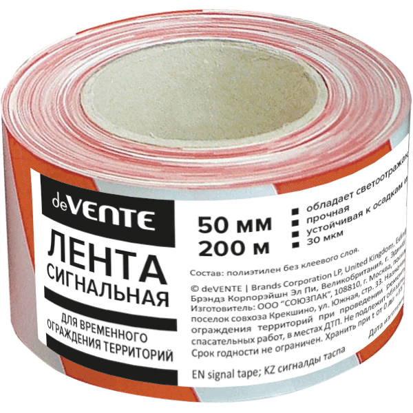 Лента сигнальная "deVENTE" красно-белая 50ммx200м полиэтилен 9056800/12/Россия