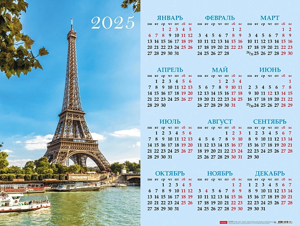 Календарь настенный листовой А2 2025г Увидеть Париж! Хатбер Кл2_31633/15/Россия