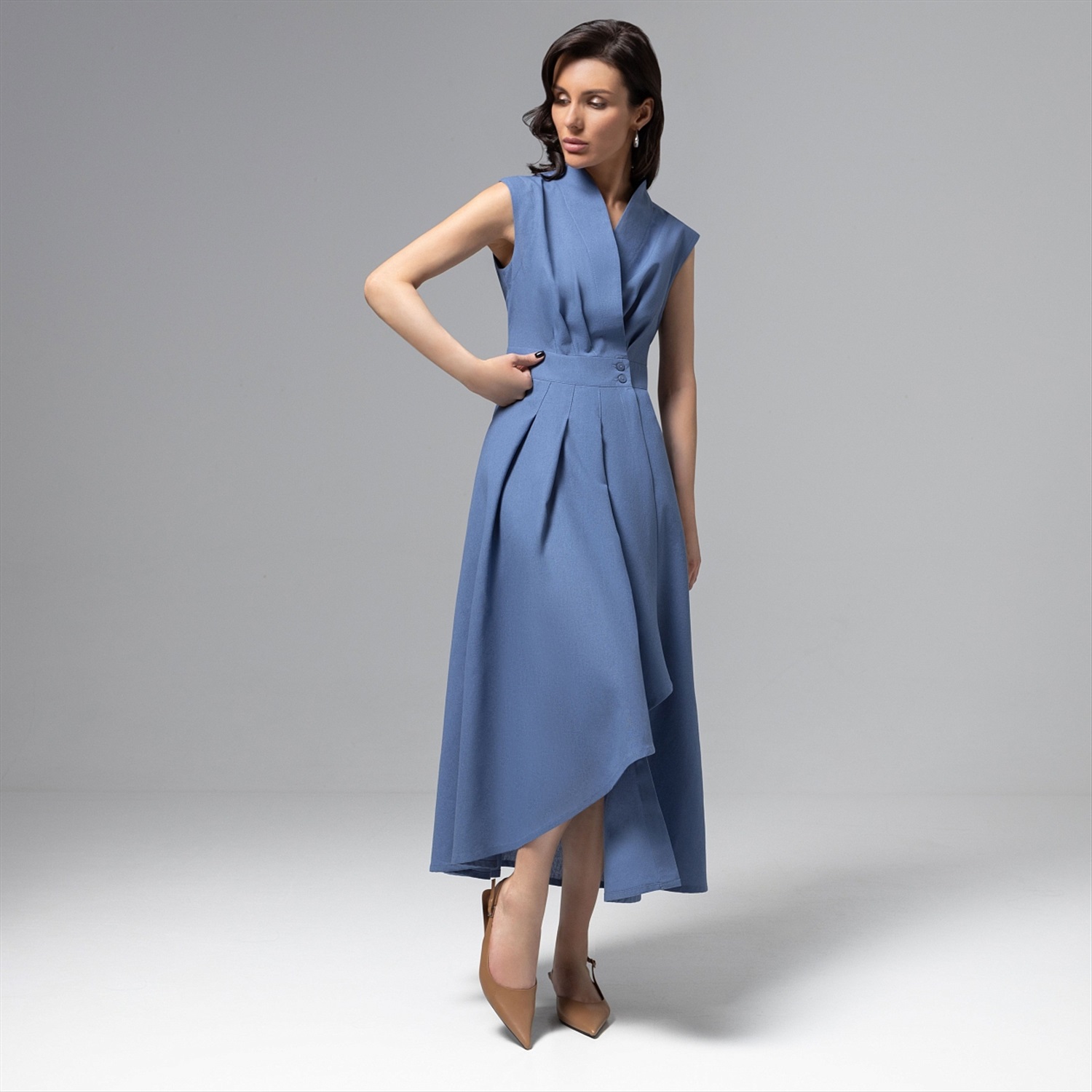 Качество пошива хорошее, лекала супер, на рост 176 выше колена. Из возможных минусов - ткань синтетика, но приятная к телу, не жаркая