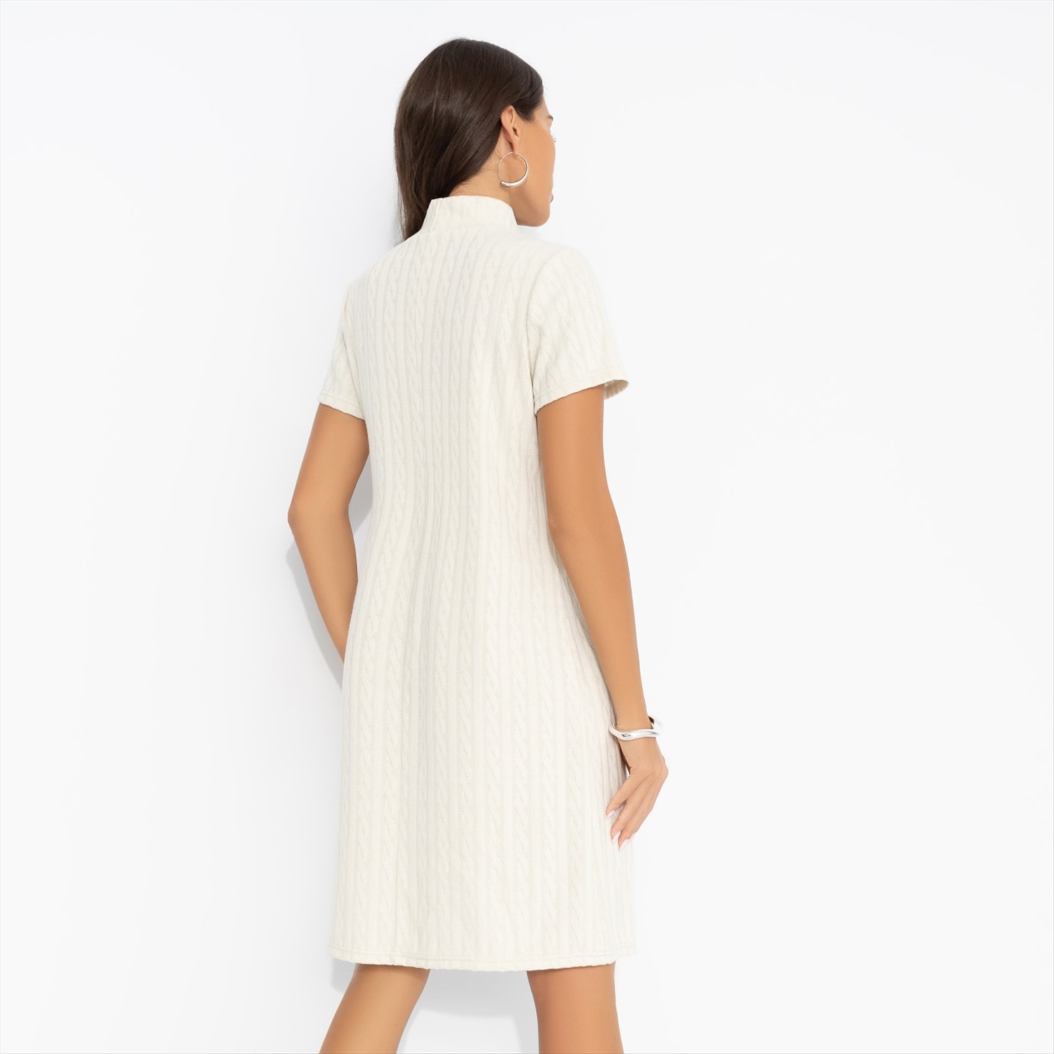 Качество пошива хорошее, лекала супер, на рост 176 выше колена. Из возможных минусов - ткань синтетика, но приятная к телу, не жаркая