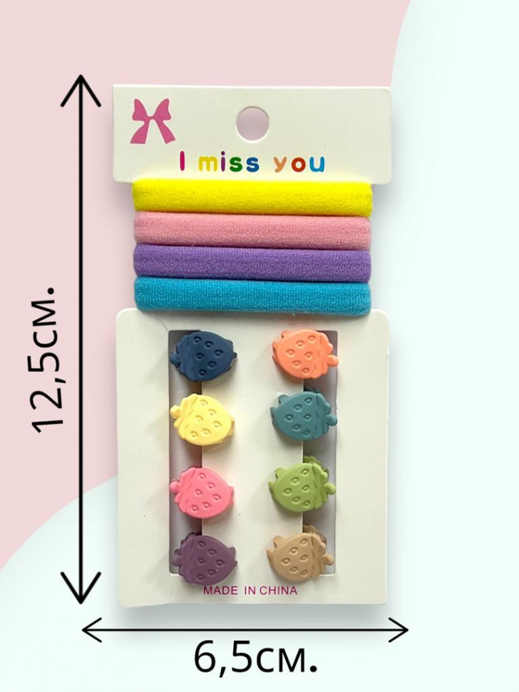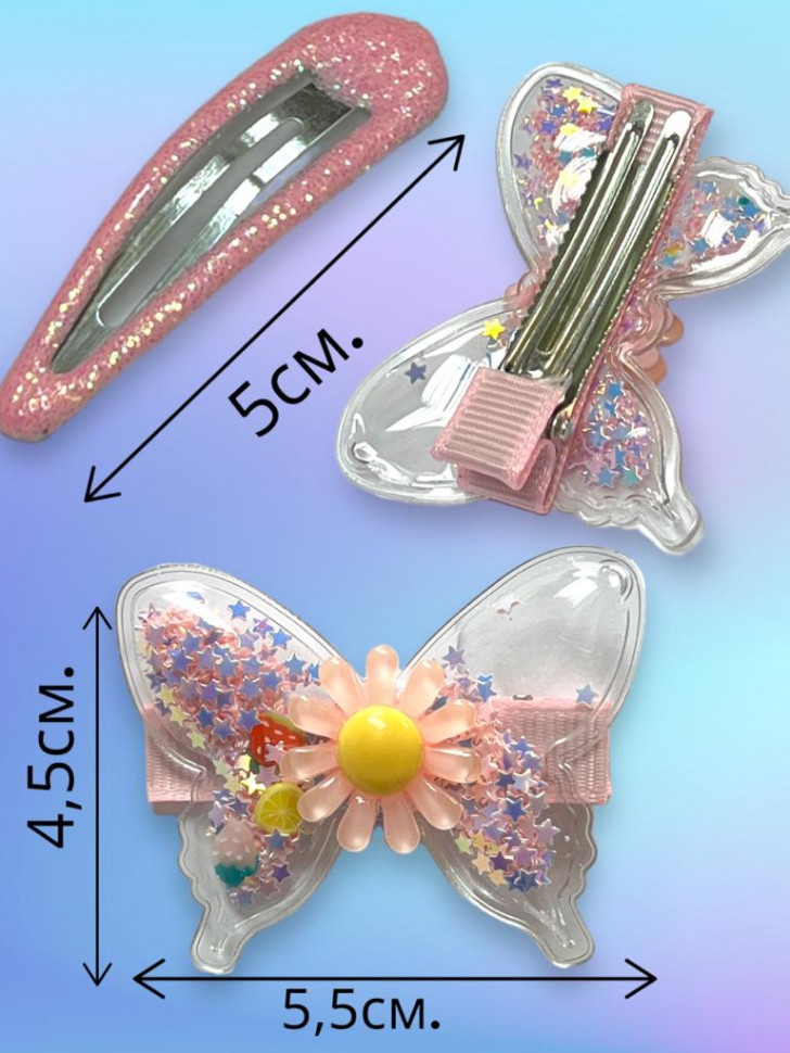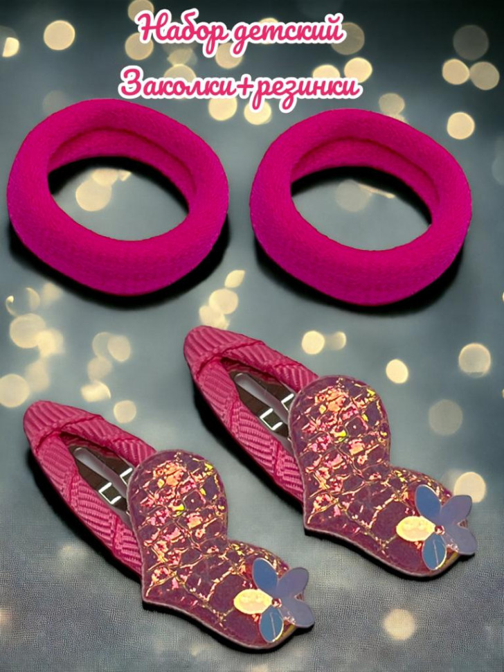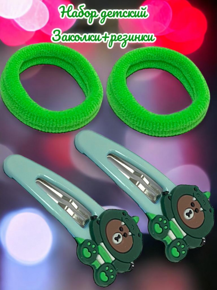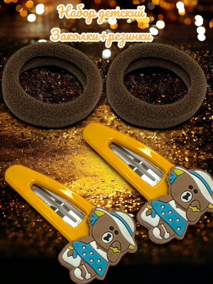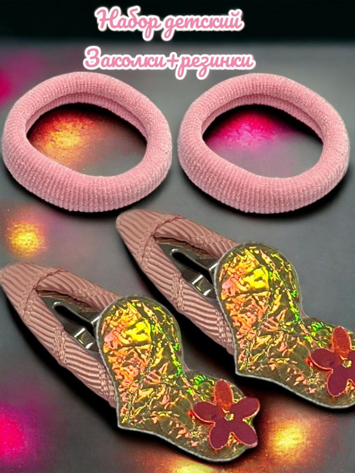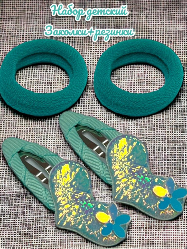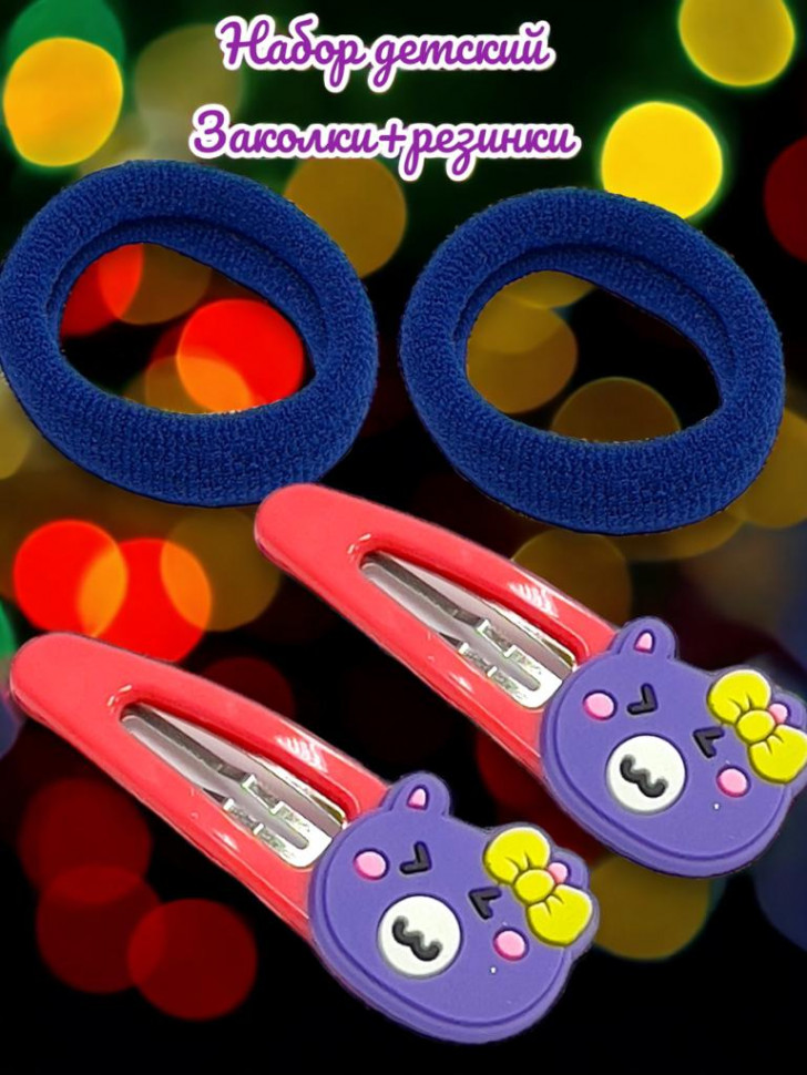Набор детских аксессуаров для волос (крабик 2 + резинка 2) НД12 тип 7 2 фото