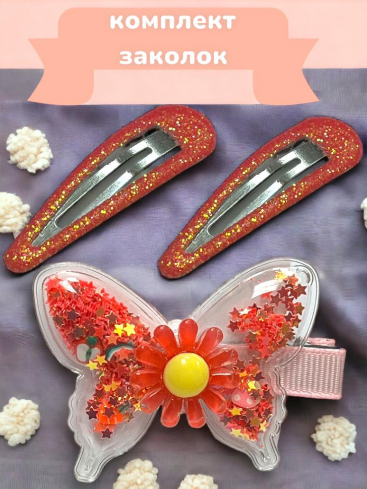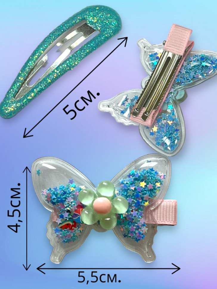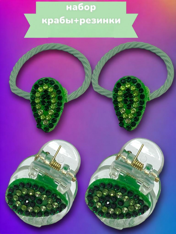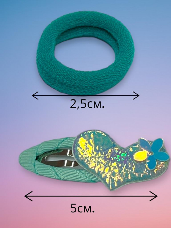 Набор детских аксессуаров для волос (крабик 2 + резинка 2) НД12 тип 5 2 фото
