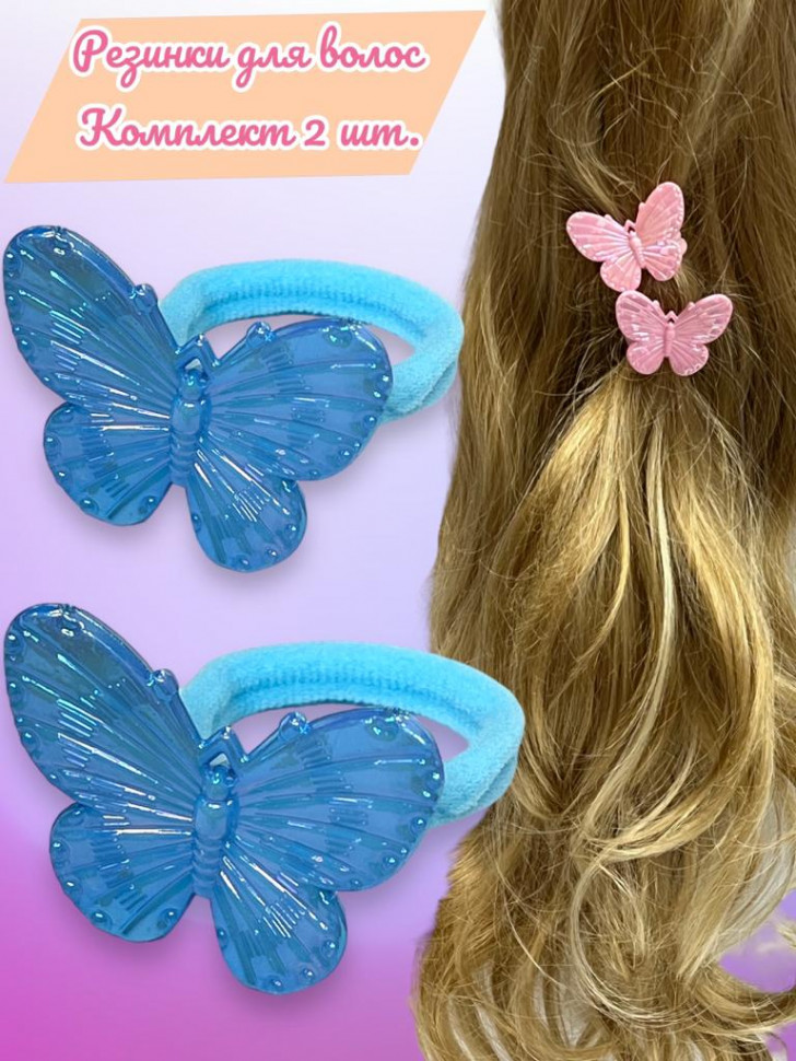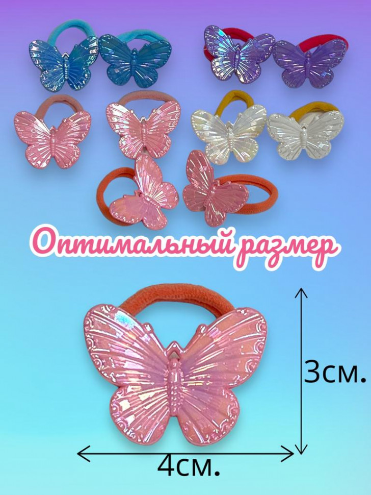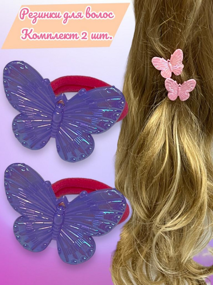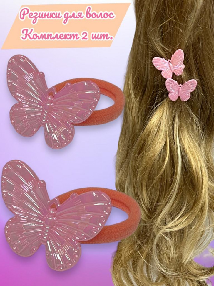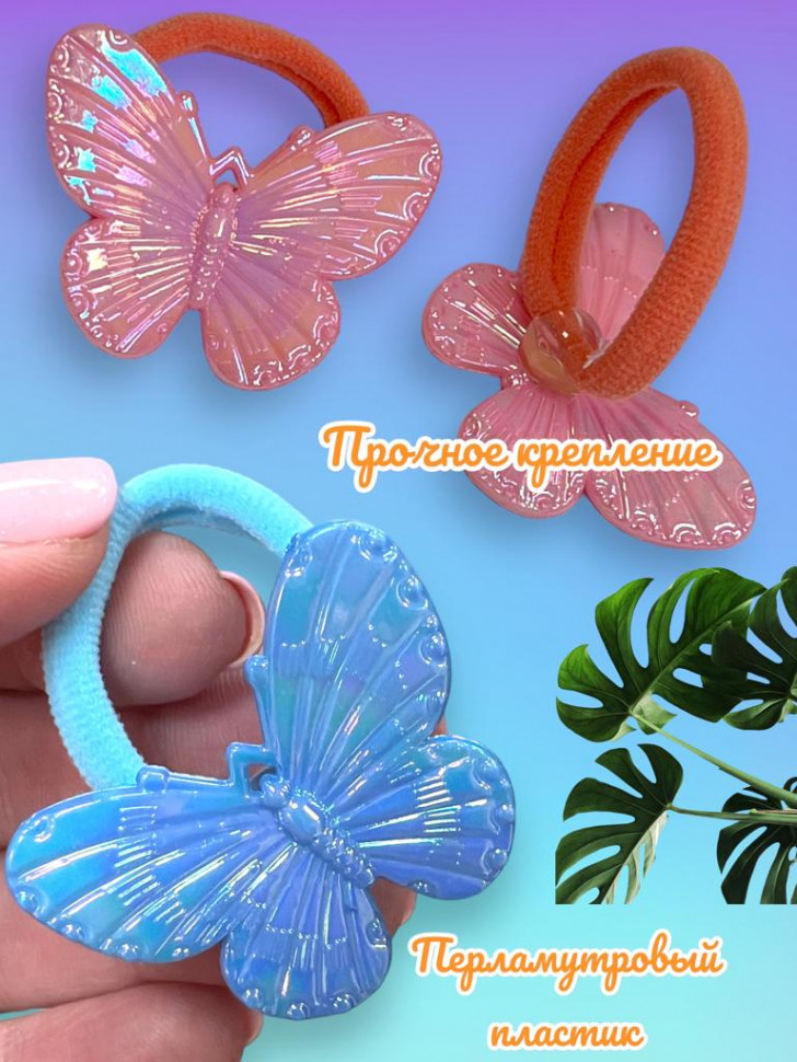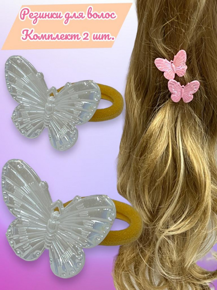 Резинки детские для волос (перламутровые бабочки) 2 шт РД16 тип 4 3 фото