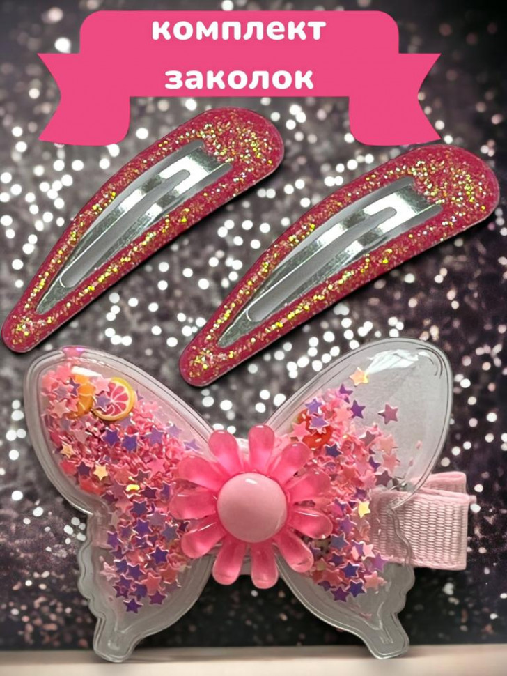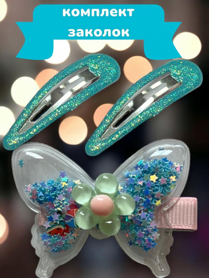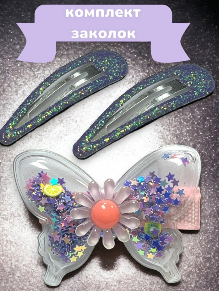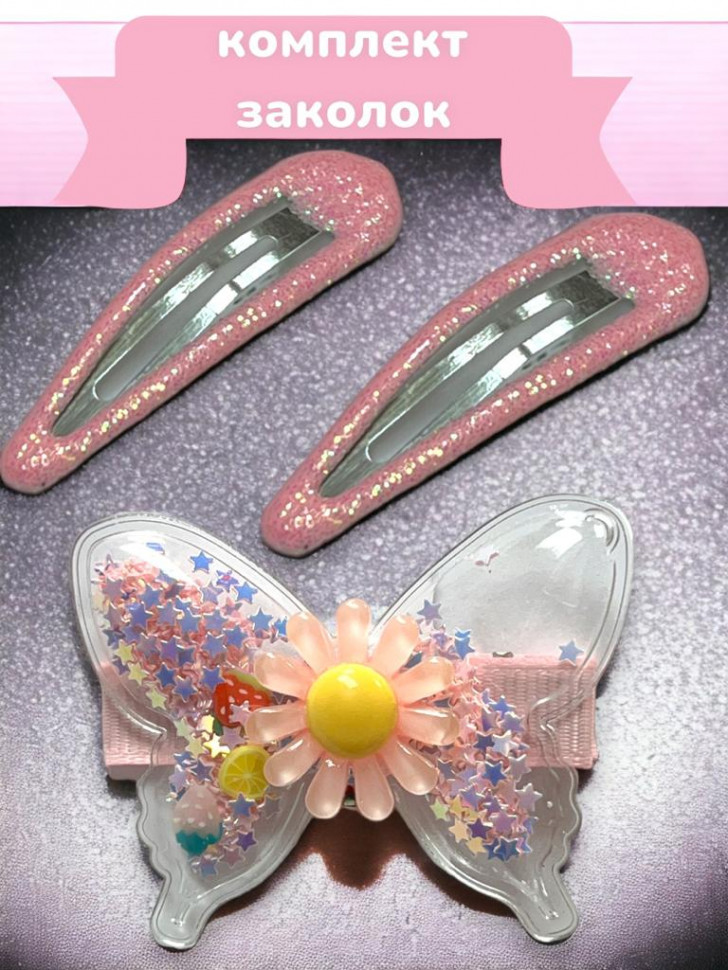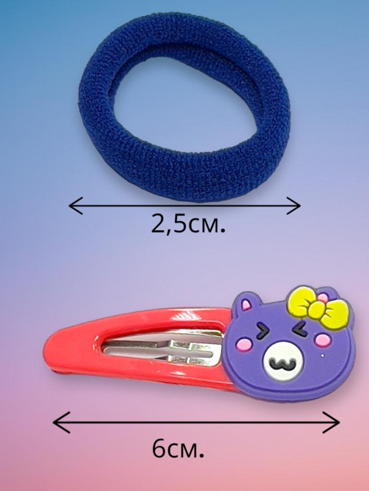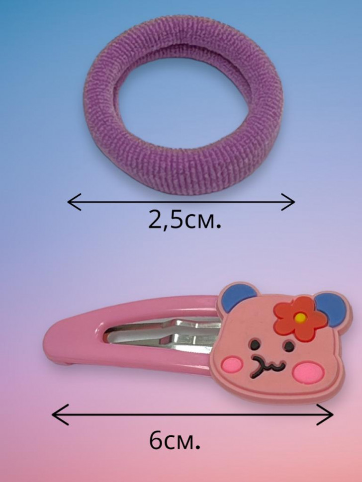 Набор детских аксессуаров для волос (крабик 2 + резинка 2) НД12 тип 6 2 фото