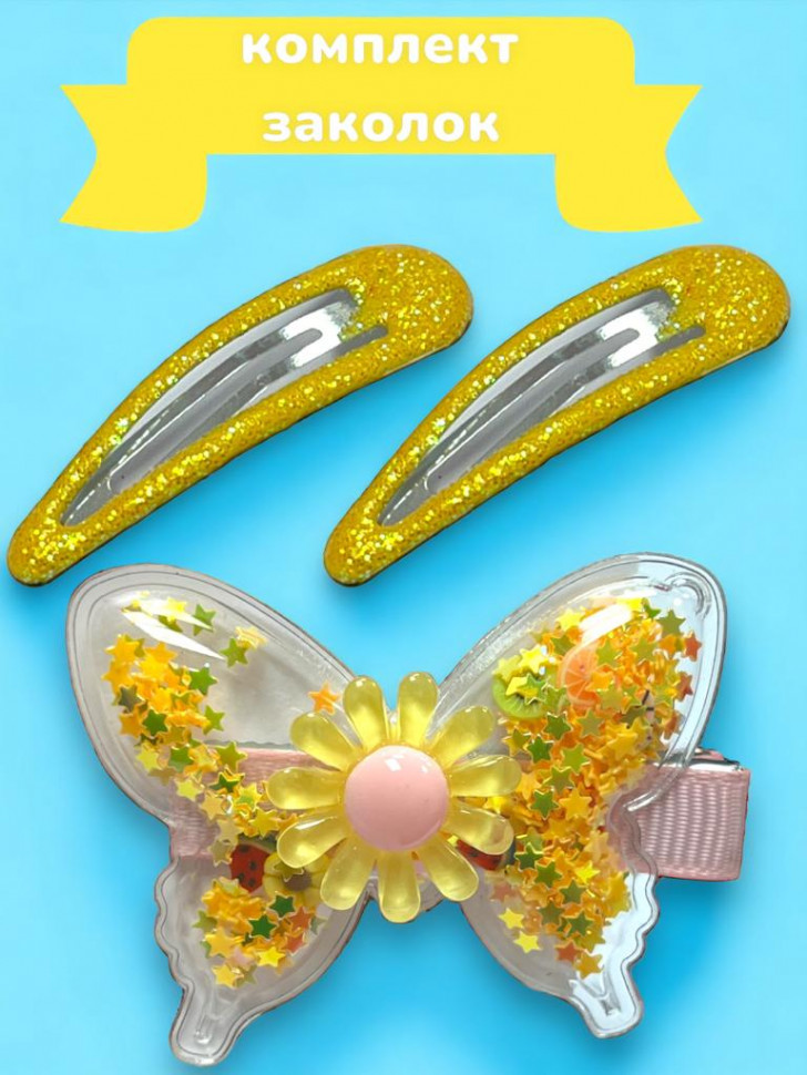 Набор детских аксессуаров для волос (уточка 1 + тик-так 2) НД11 тип 3 3 фото