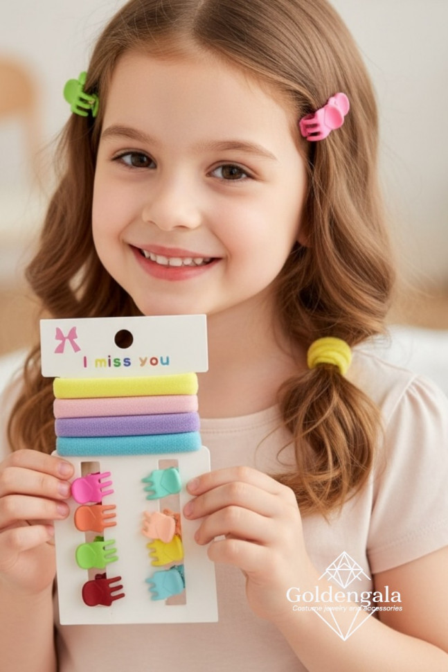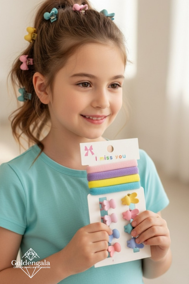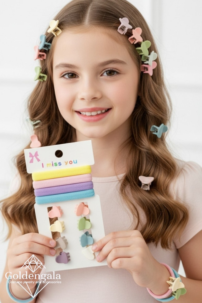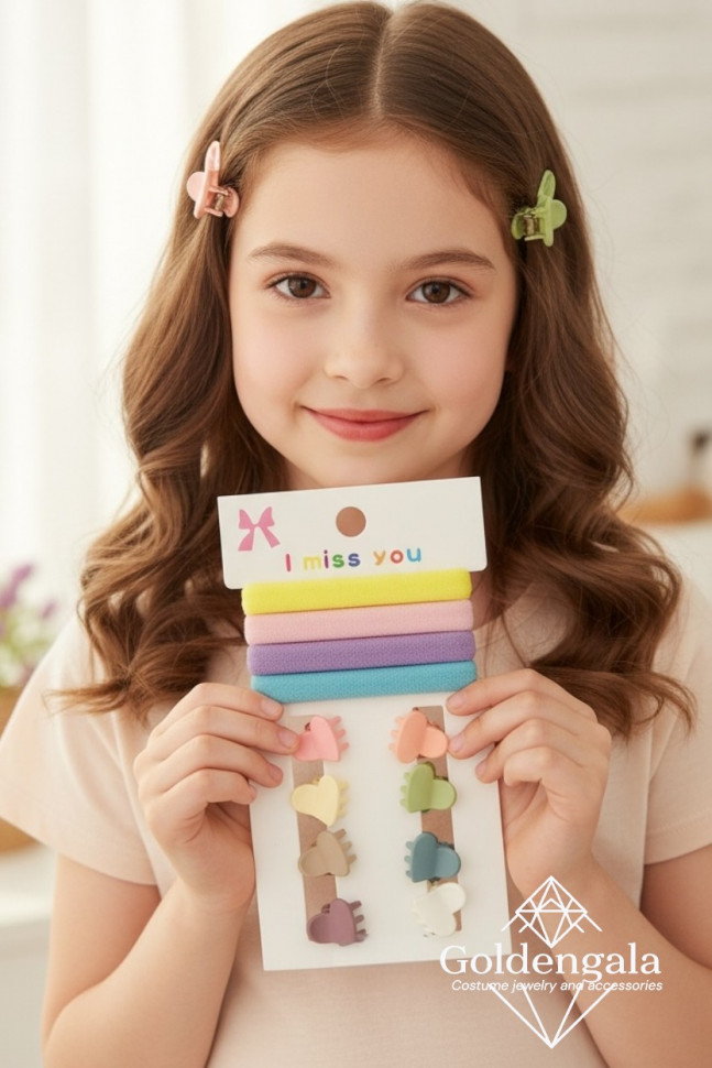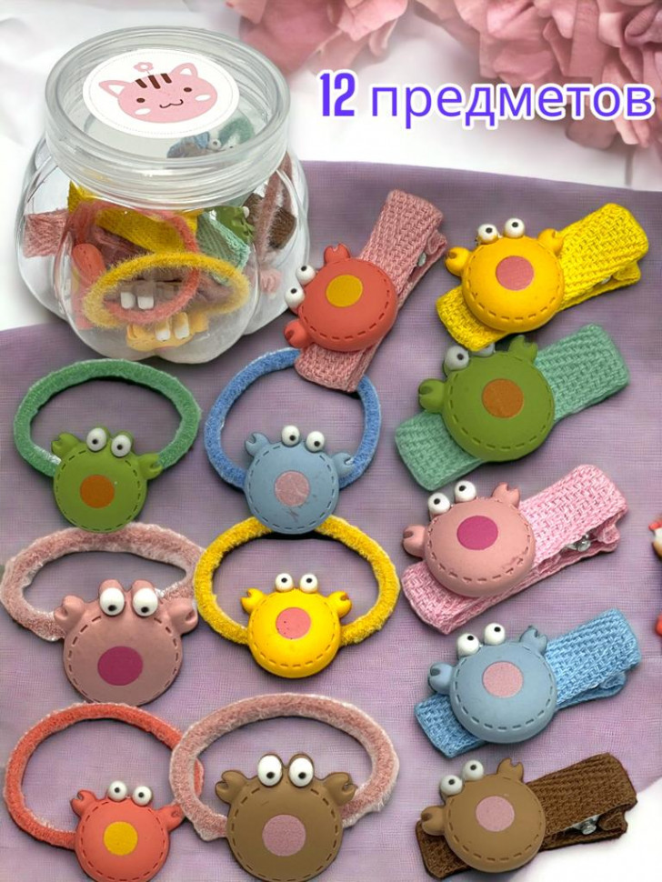 Набор детских аксессуаров для волос премиум 12 предметов (6 резинок, 6 зажимов) 7 фото
