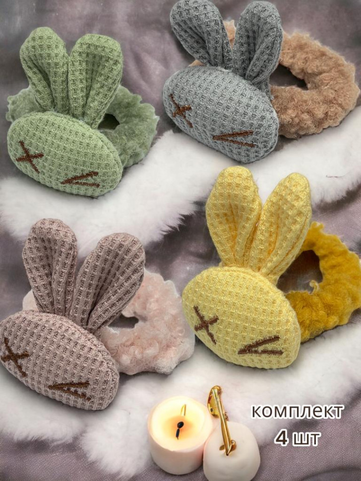 Резинка для волос меховая "Зайка" РД6 4 шт 7 фото