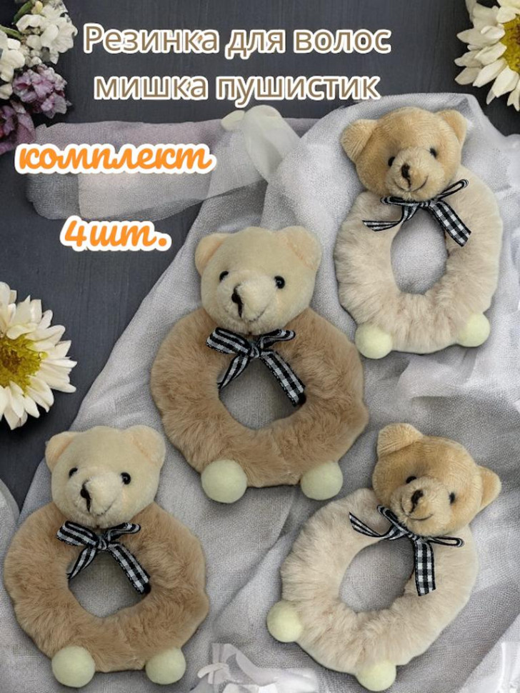 Резинка меховая Мишка РД10 4 шт 5 фото