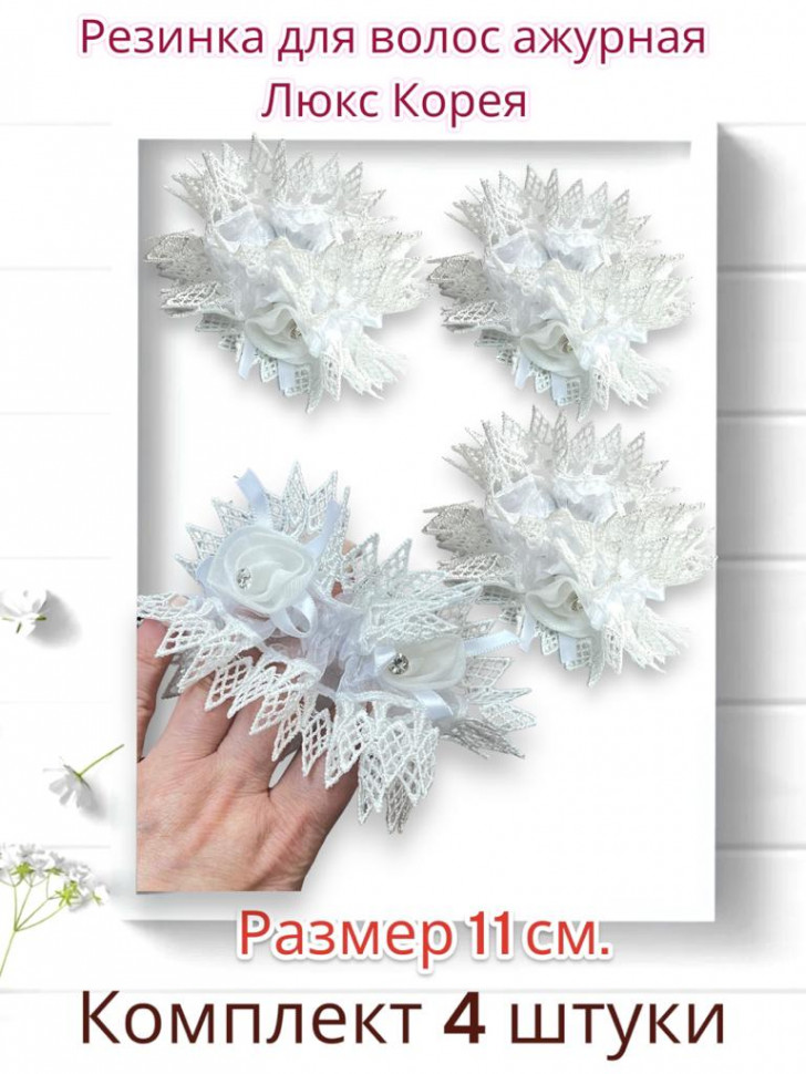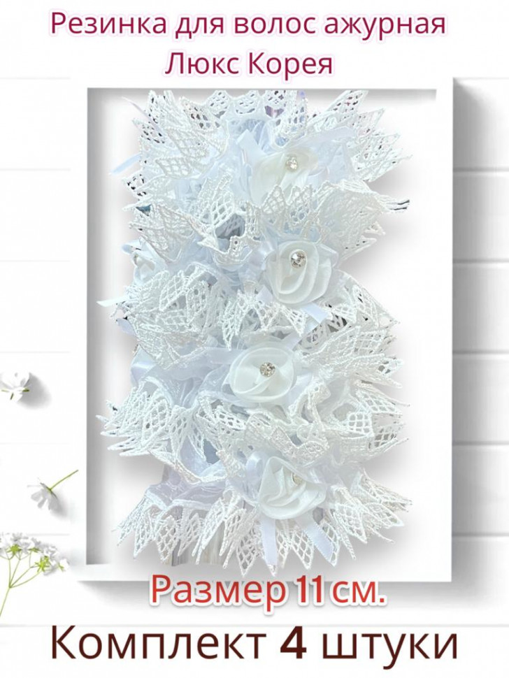 Резинка для волос с кружевом белая Корея Р35 3 фото