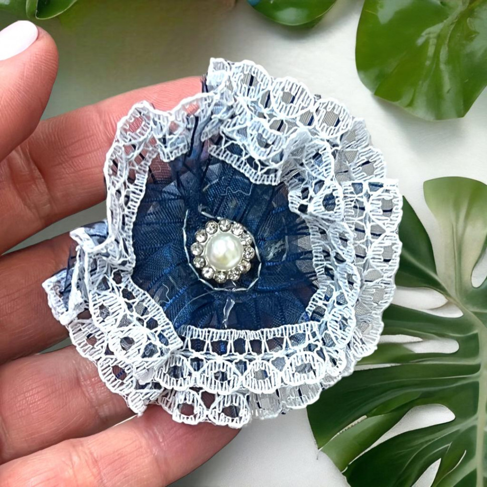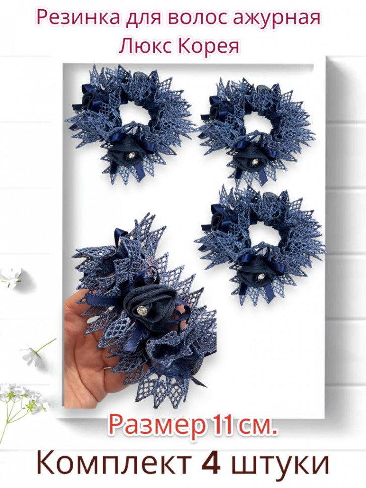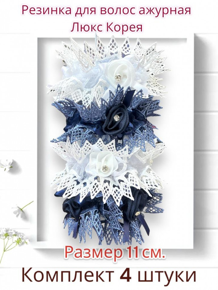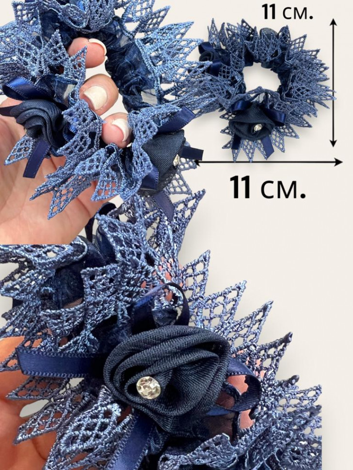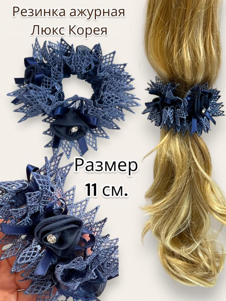 Резинка для волос с кружевом синяя Корея Р35 3 фото