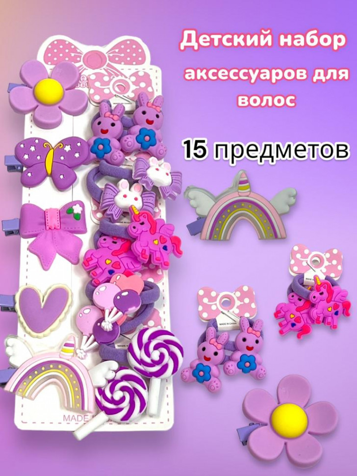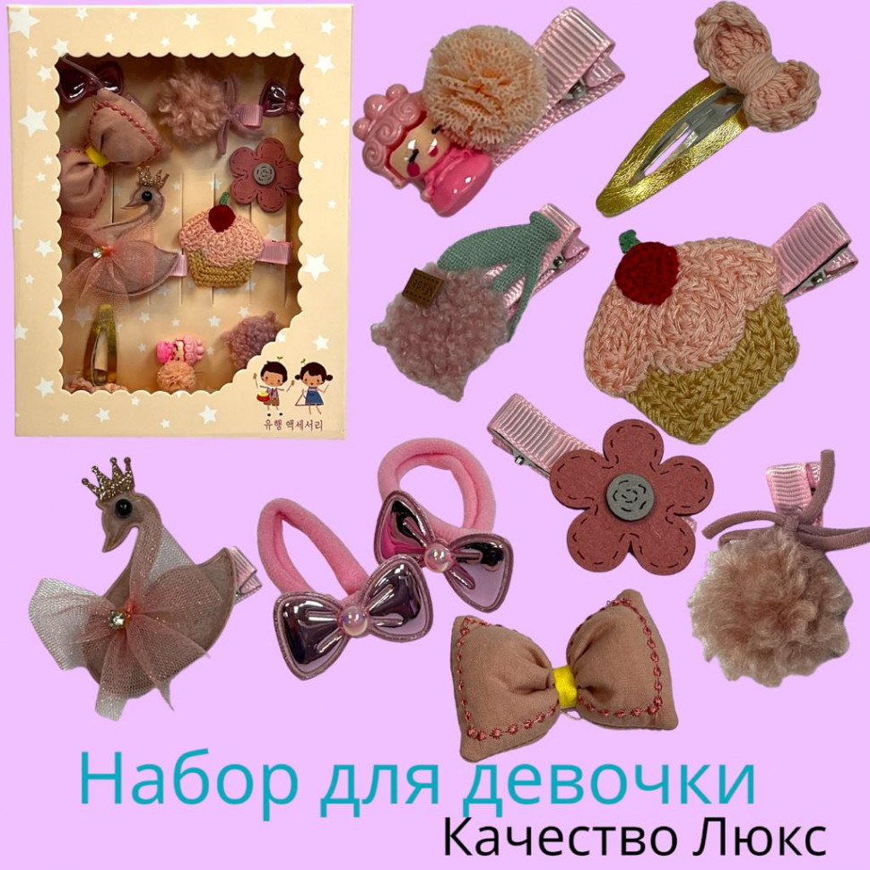 Детский набор аксессуаров для волос в подарочной коробке 10 предметов тип 2 14 фото
