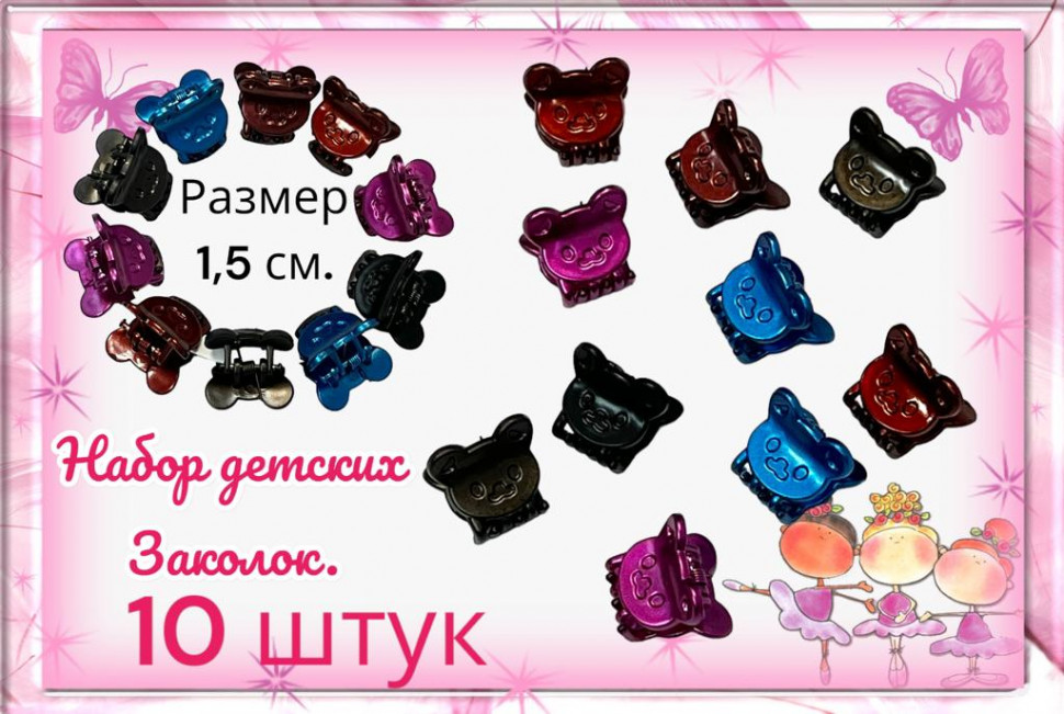 Набор детских заколок "крабик Мишка" 10 шт 2 фото