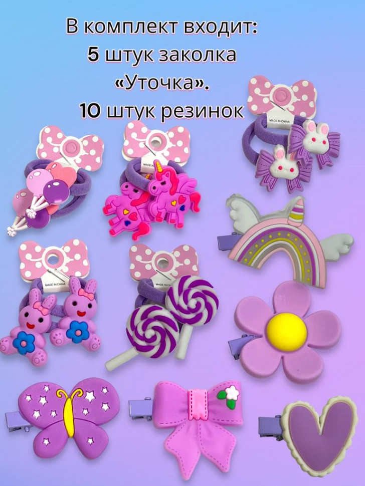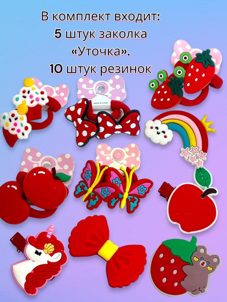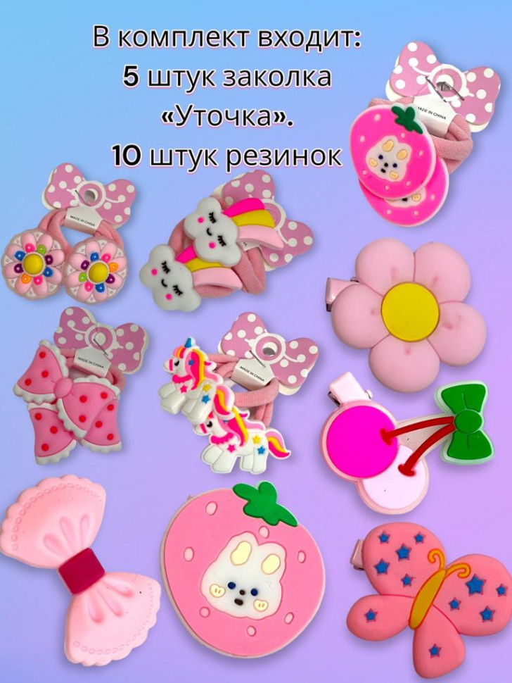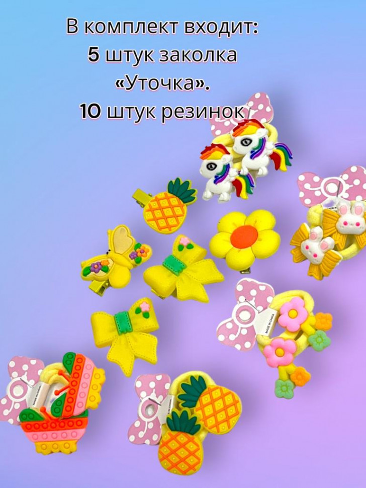Набор аксессуаров для волос (уточки 5 шт + резинки 10 шт) Арт НД11 тип 5 12 фото