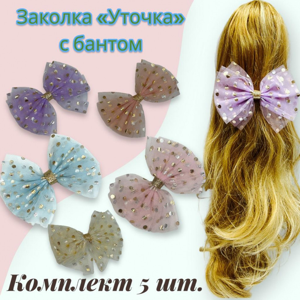 Заколка-уточка с бантом 5 шт УТ17 модель 1 8 фото