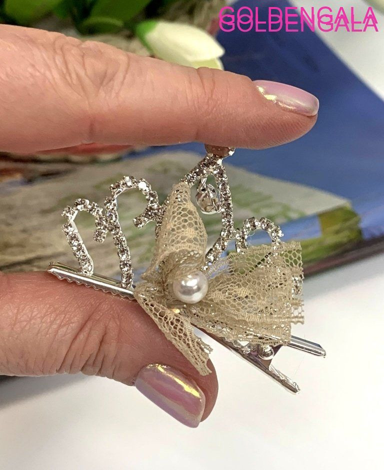 Заколка-уточка для волос с короной детская 5,5 см тип 3 3 фото