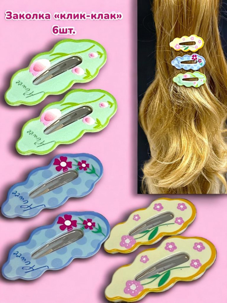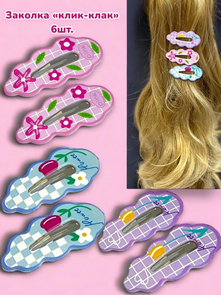 Набор детских зажимов для волос "Тик-так" 6 шт ТК5 тип 4 4 фото