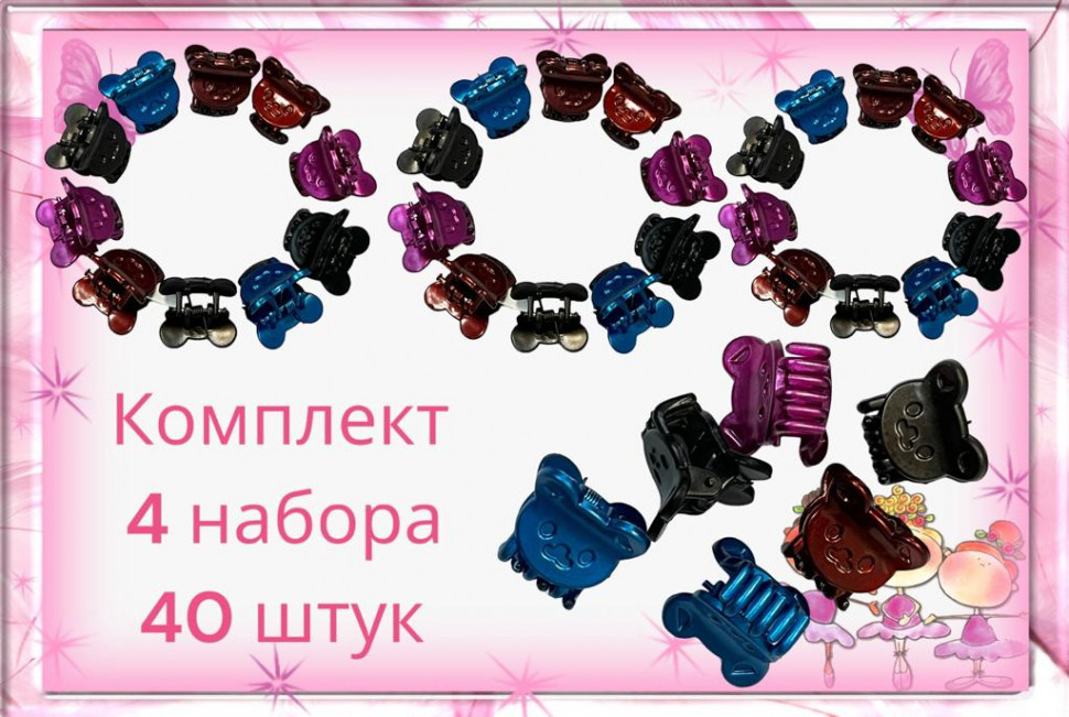 Набор детских заколок крабик Мишка 4 набора 40 шт 3 фото