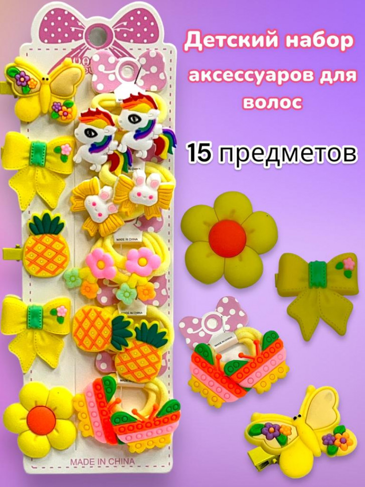 Набор аксессуаров для волос (уточки 5 шт + резинки 10 шт) Арт НД11 тип 4 12 фото