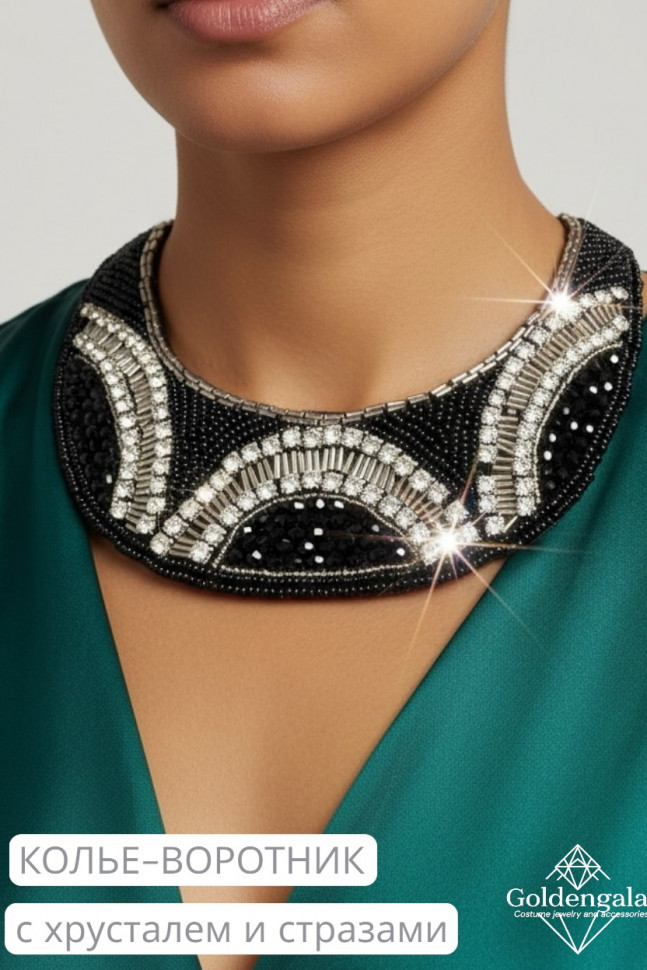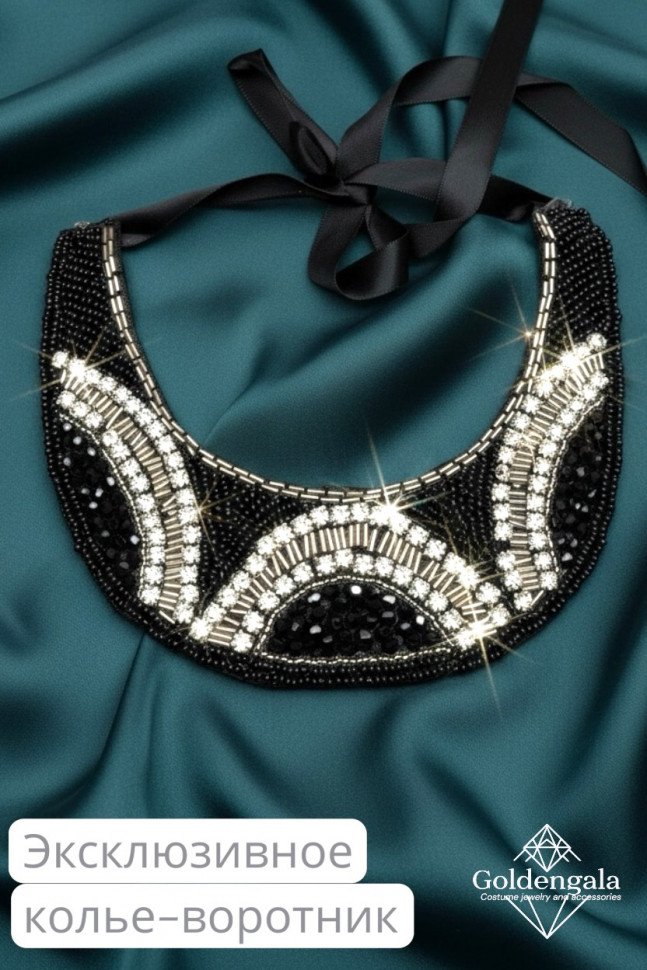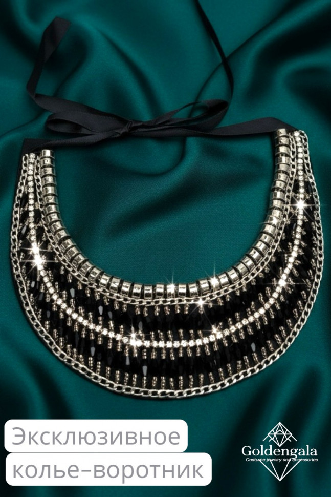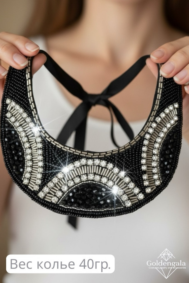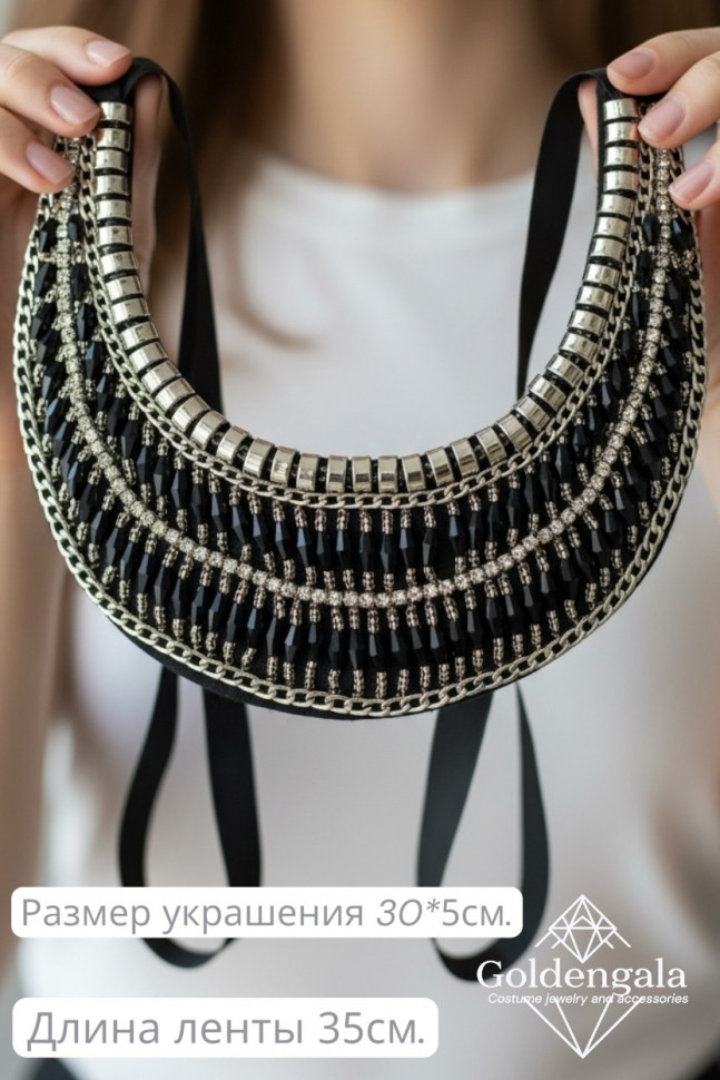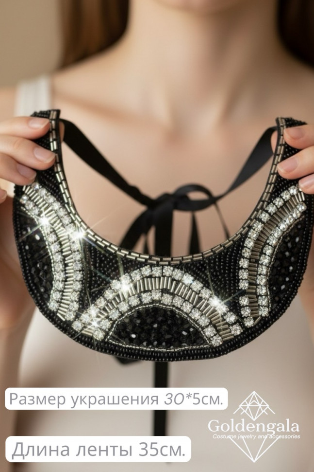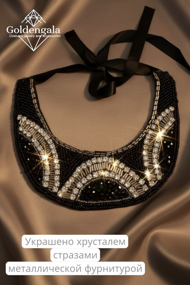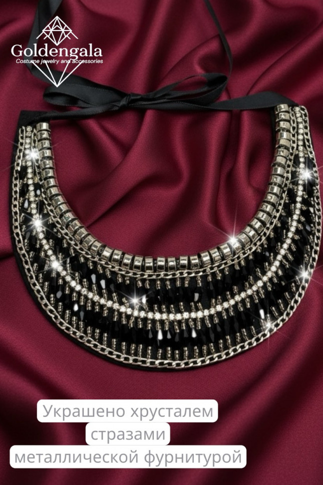 Колье-воротник текстильное с хрусталиками П4/07 10 фото