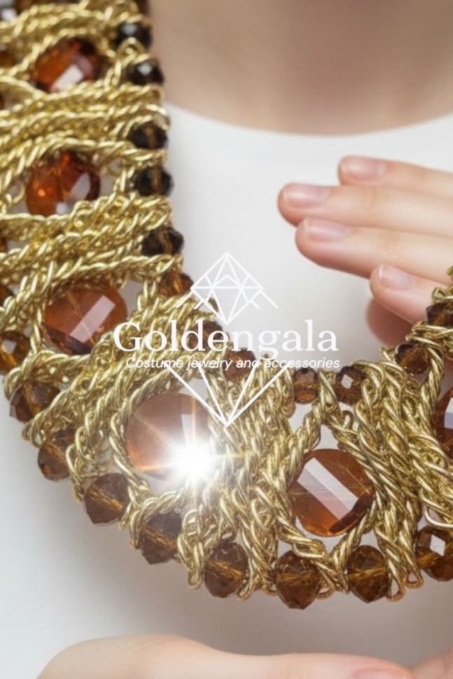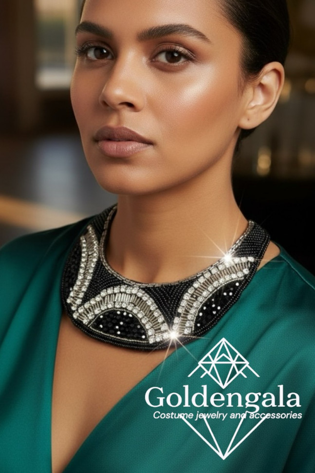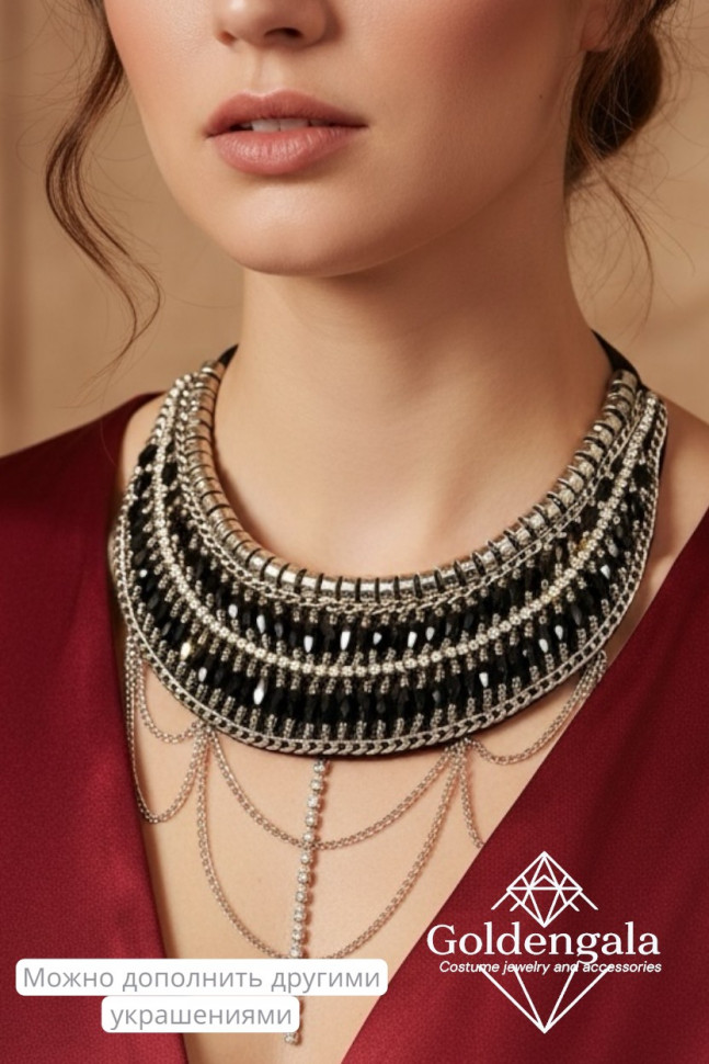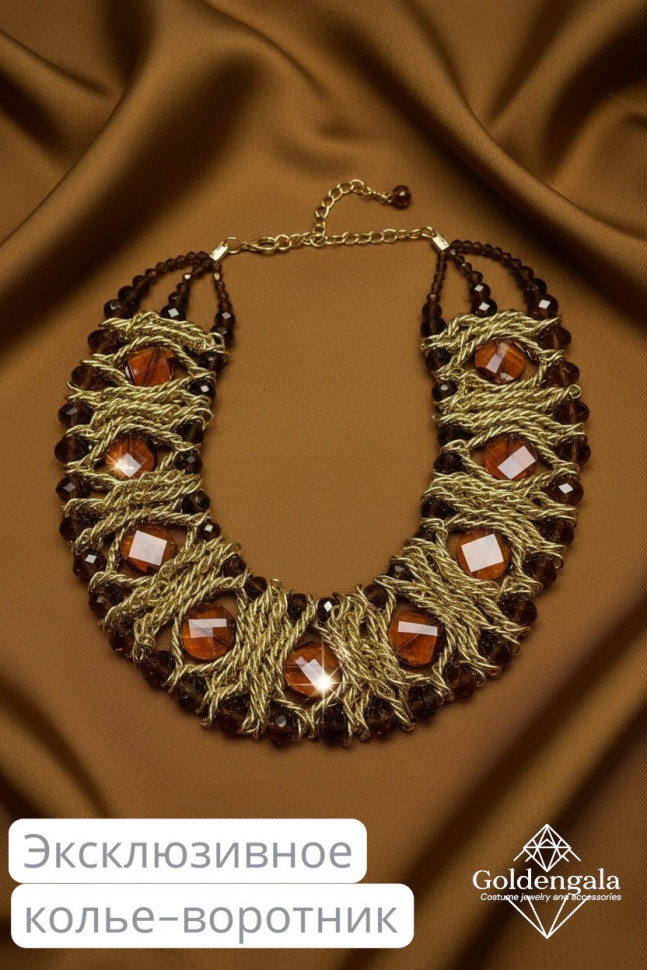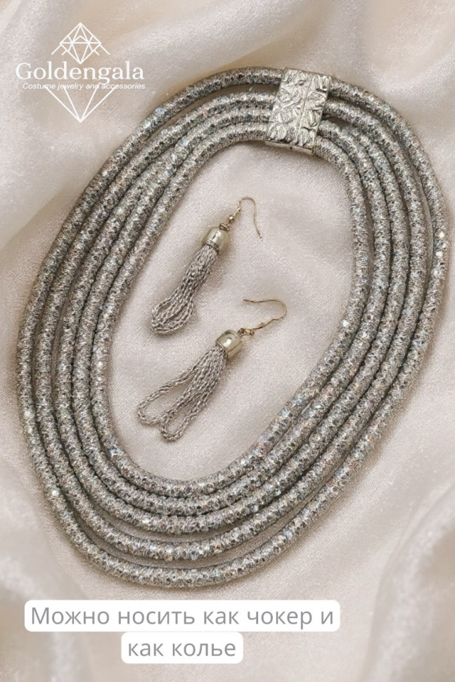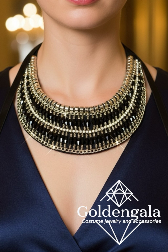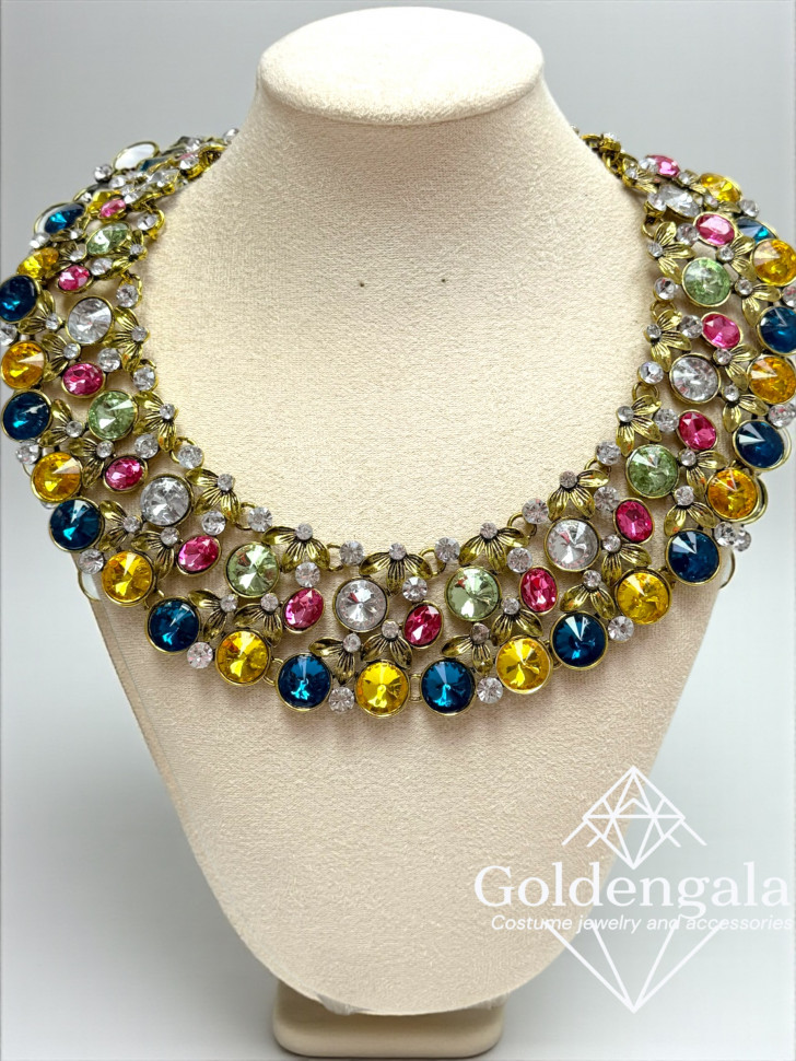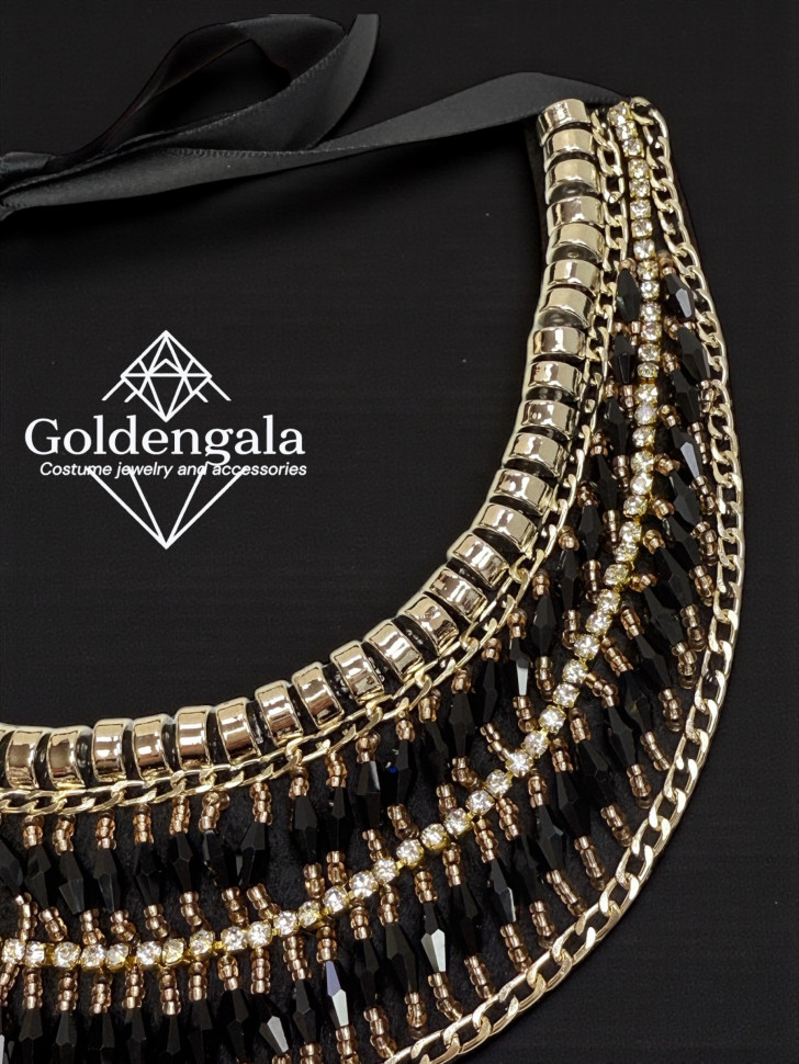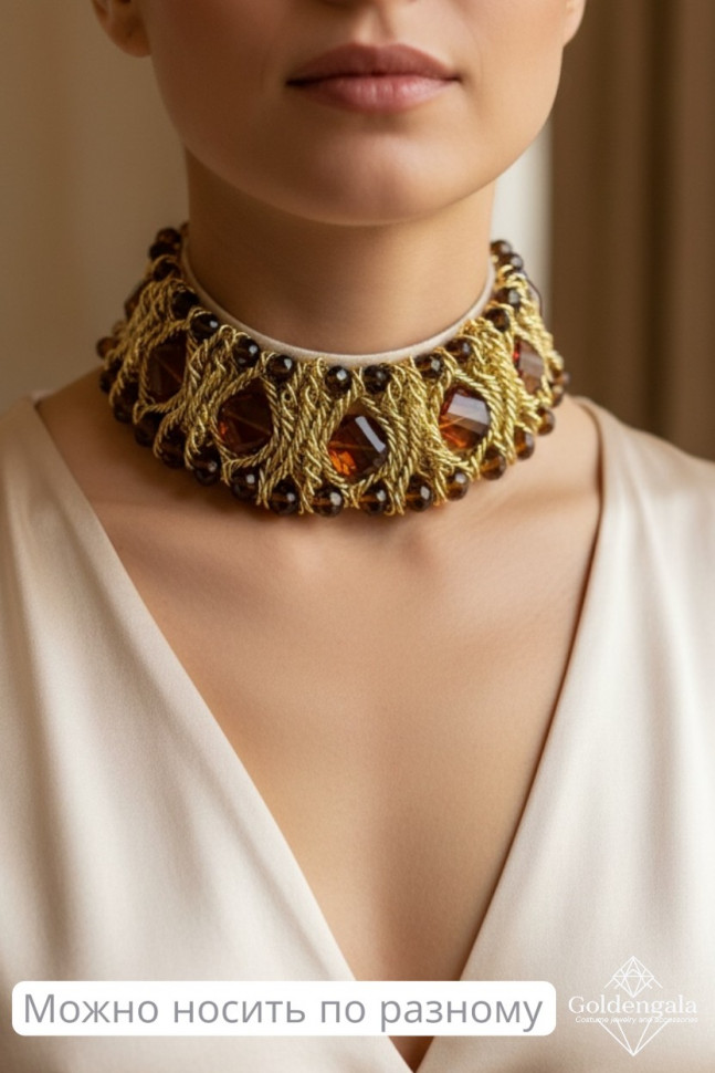 Колье-воротник текстильное с хрусталиками П4/07 10 фото
