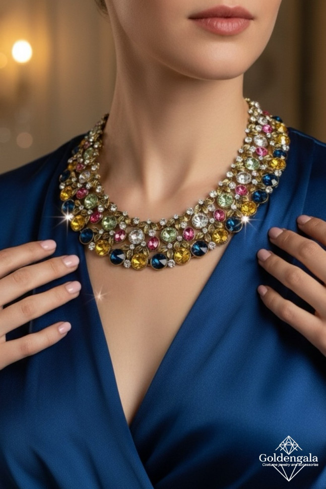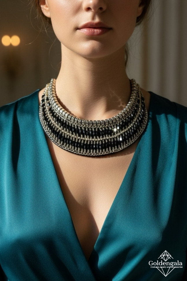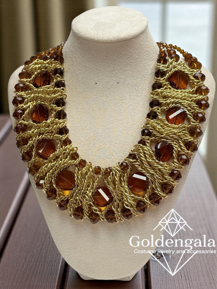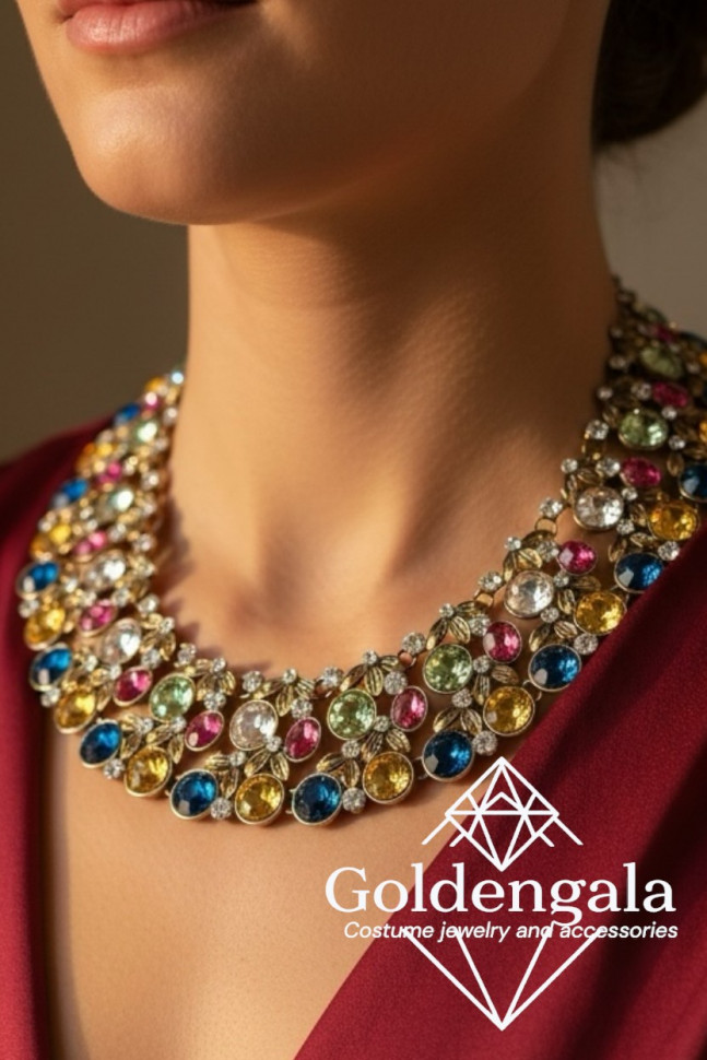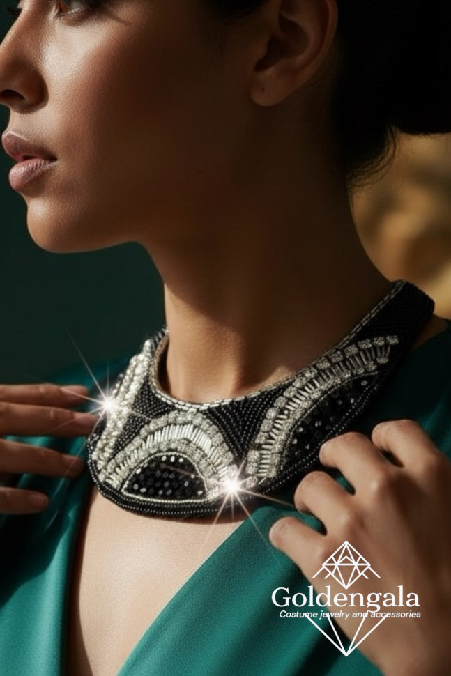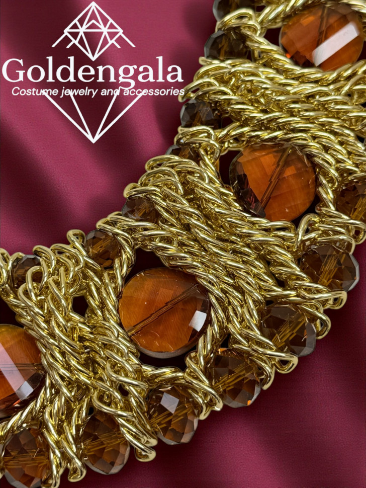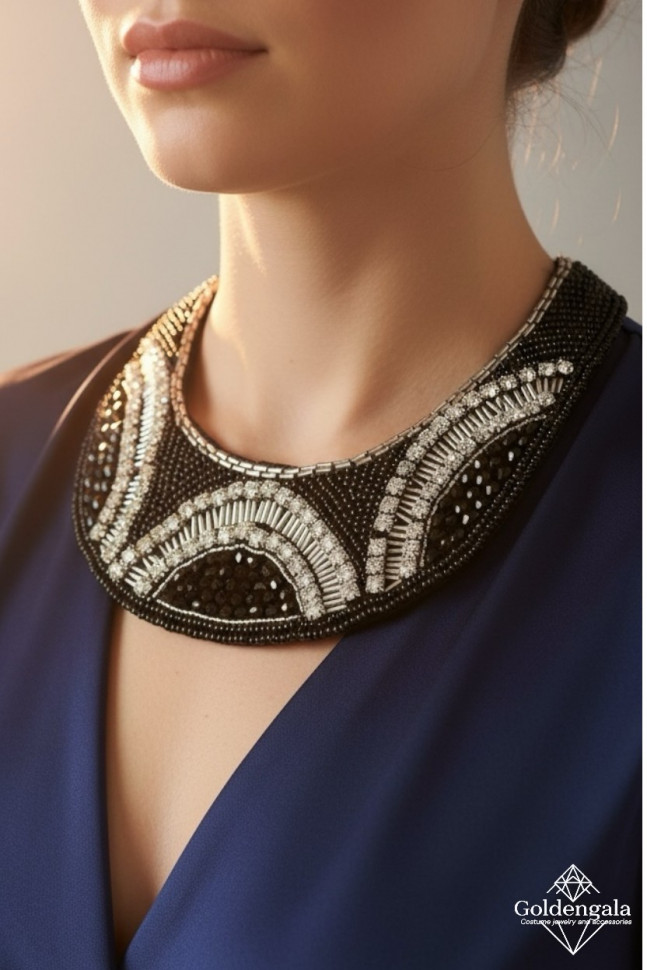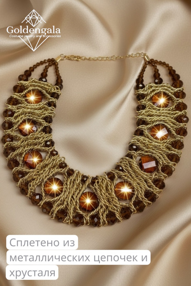 Колье-воротник текстильное с хрусталиками П4/07 10 фото