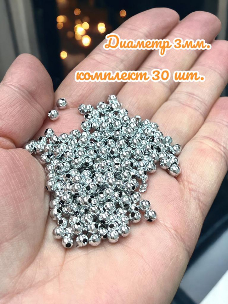 Бусины пластик "Серебро" набор 30 штук 3 мм 2 фото