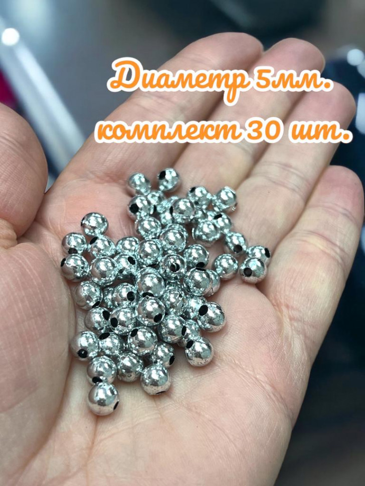Бусины  пластик "Серебро" набор 30 штук 5 мм 2 фото
