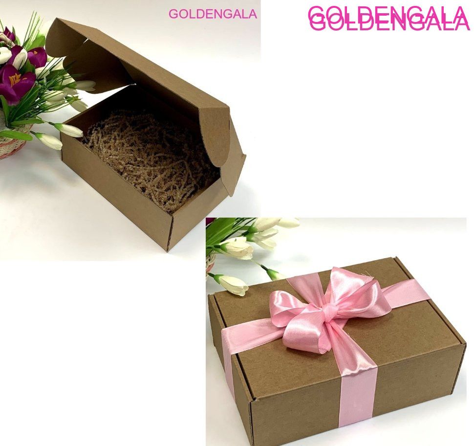 Коробка для упаковки подарочная с лентой (крафтовый картон) 4 фото