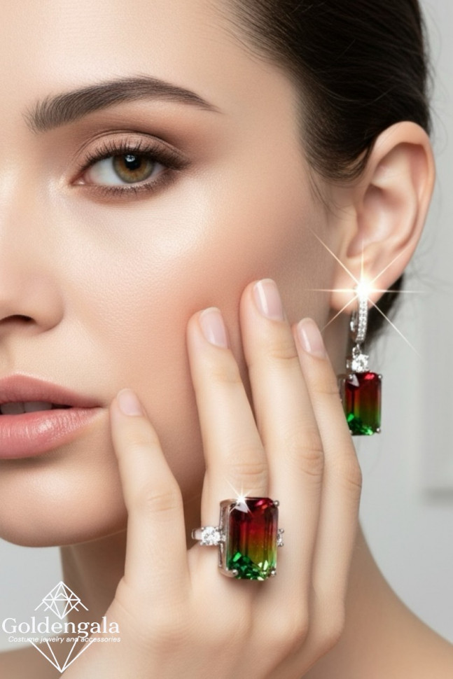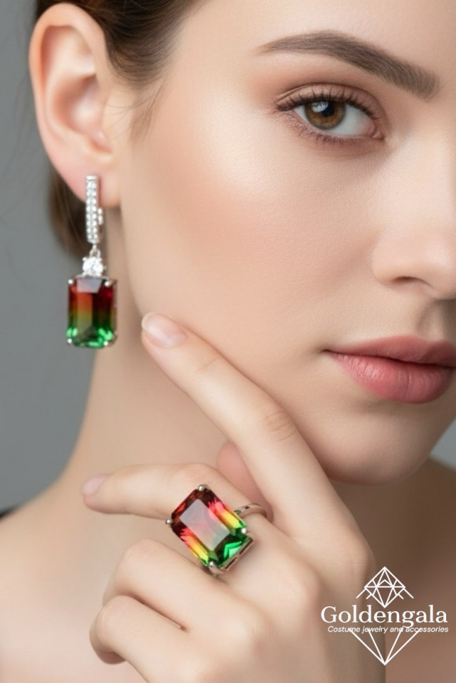 Ювелирный набор бижутерии с родиевым покрытием с кольцом18 Н4/4 6 фото