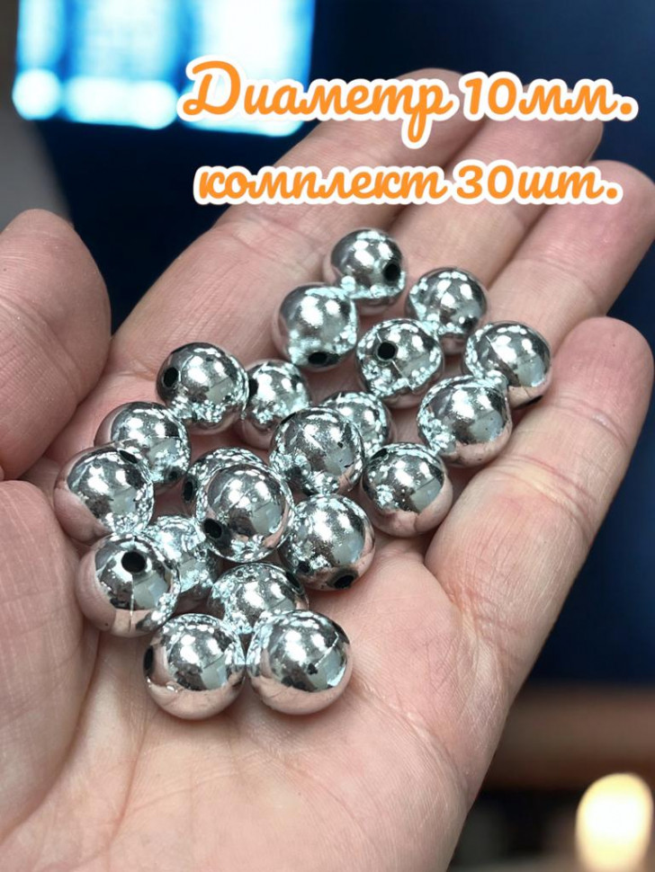 Бусины пластик "Серебро" набор 30 штук 10 мм 2 фото