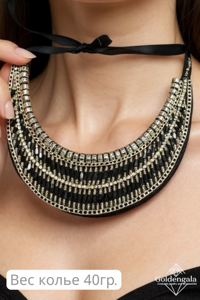 Колье-воротник текстильное с хрусталиками П4/06 10 фото